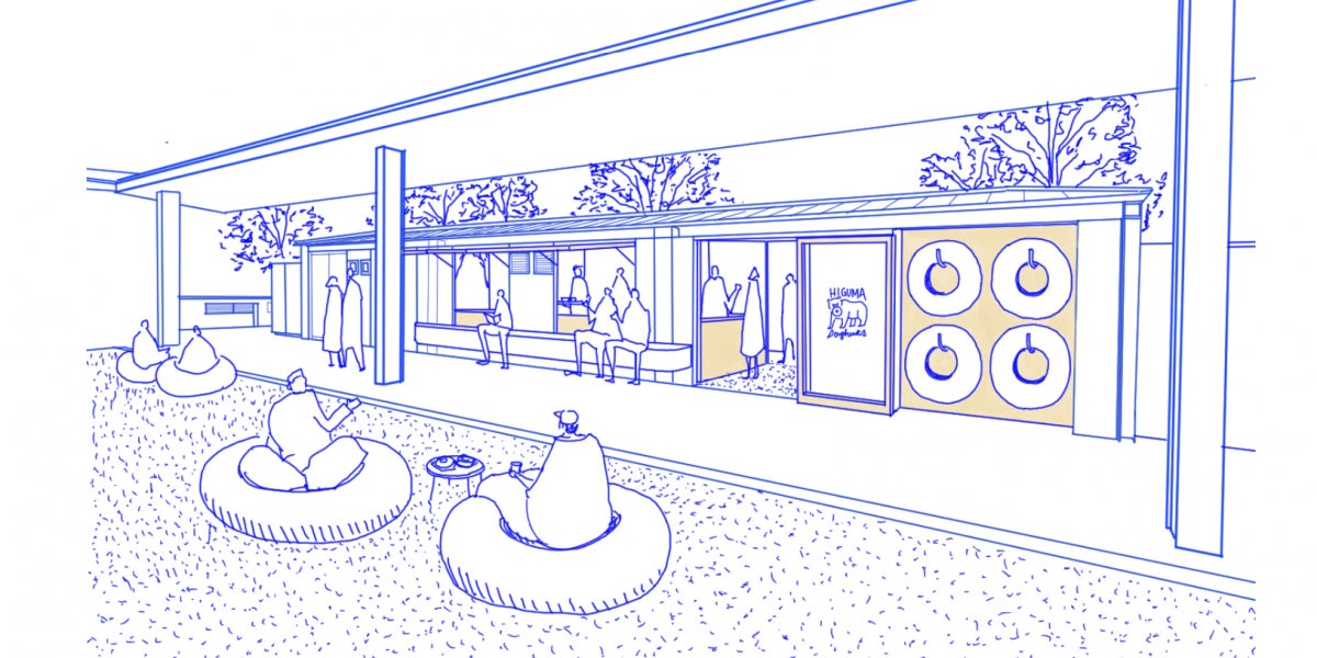 春日井(HIGUMA Doughnuts):ここは、半公共の場というか、みんなに開かれた場所であるので、心地よい太陽の下、京都のローカルな人たちや観光で訪れる海外の人たち、そしてコーヒーやドーナッツを楽しみにしてくれる人たちがゆったりと混ざり合い、新しい出会いが生まれる場所になったらいいなと思っています。そのために、フードの提供だけではなく、芝生スペースを使ったイベントなどもやっていきたいですね。