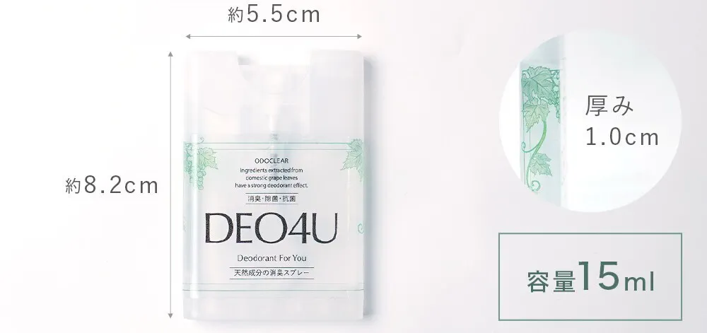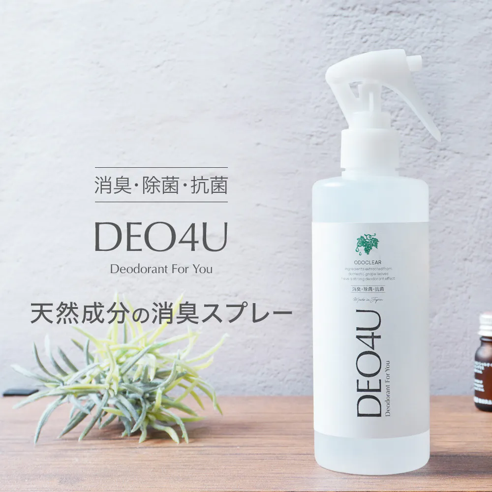 DEO4Uは強力な消臭成分があるブドウ葉エキス「オドクリア」と強力な除菌・抗菌力をもつグレープフルーツ種子エキス「Desfan10」を配合!