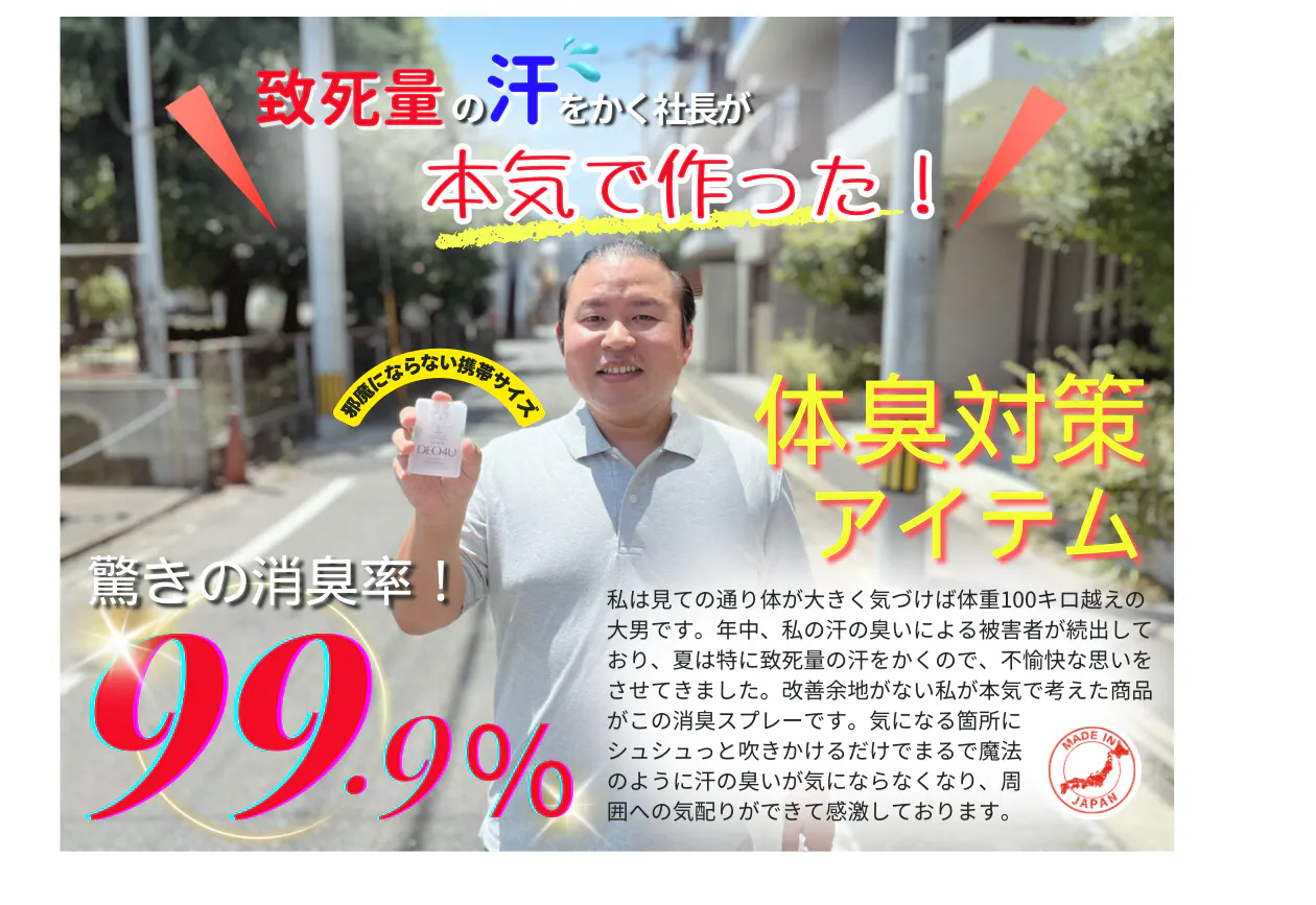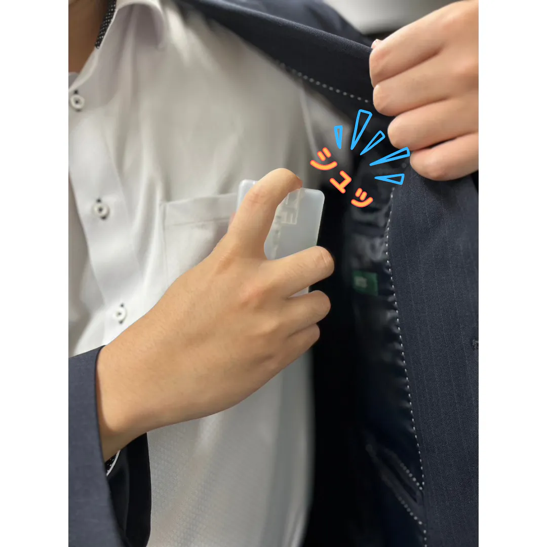 そんな方にスーツのポケットにこっそり忍ばせられる持ち運び消臭スプレーを万年汗っかきの私が開発しました。