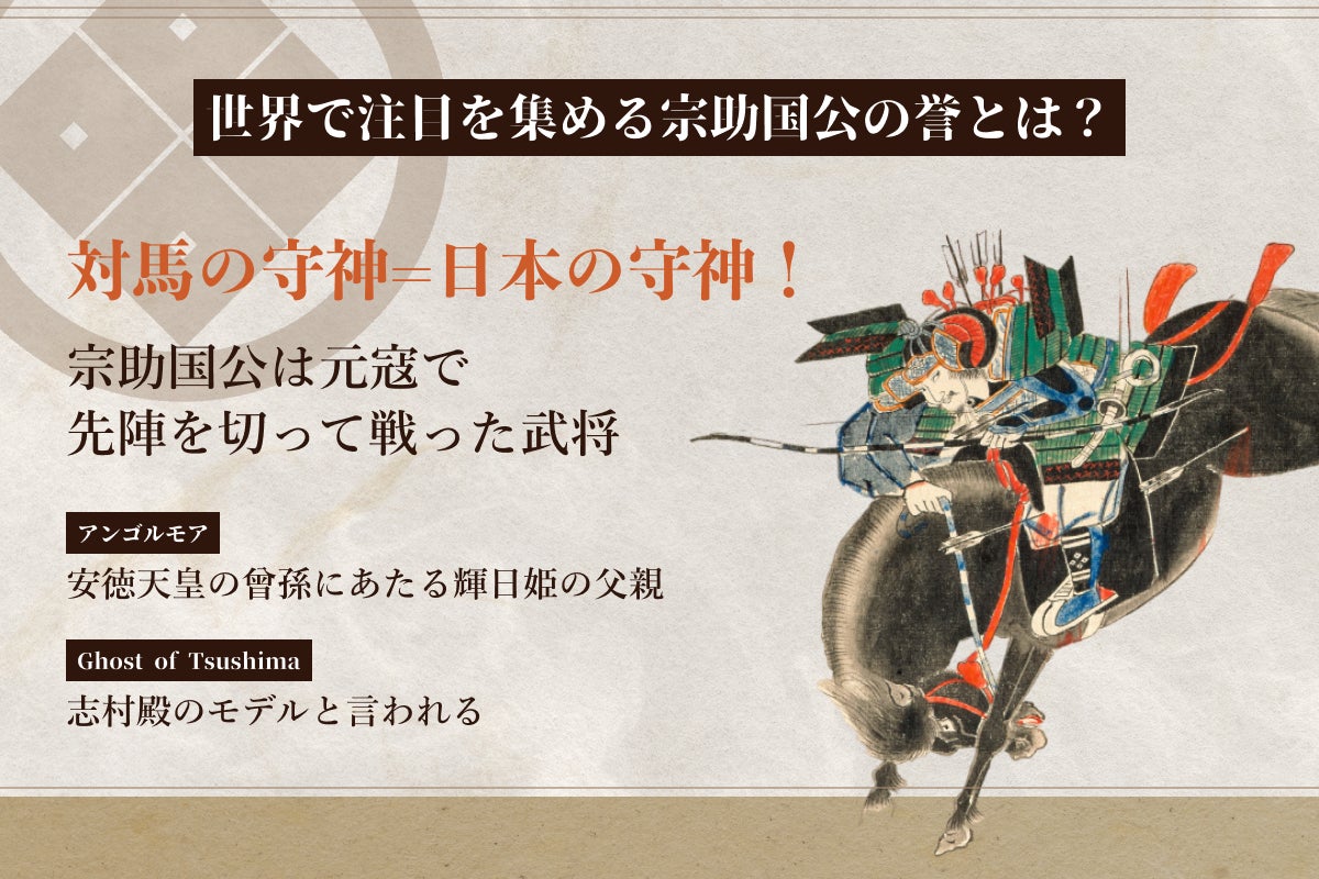 しかし、武士として日本・対馬を一所懸命に守るべく、375倍もの人数の元軍に立ち向かい戦い抜いた宗助国公。その誉や人柄は、750年経った今も「対馬の守神」として語り継がれ、最近では元寇をテーマにした漫画やゲームのキャラクターとしても描かれています。