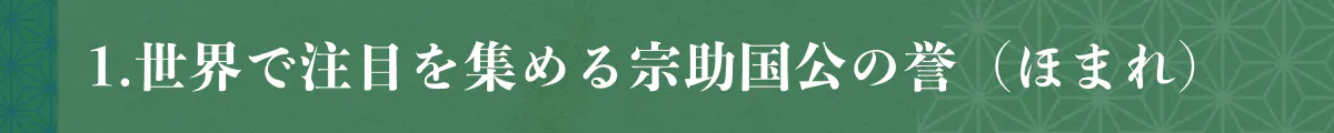 1. 世界で注目を集める宗助国公の誉(ほまれ)