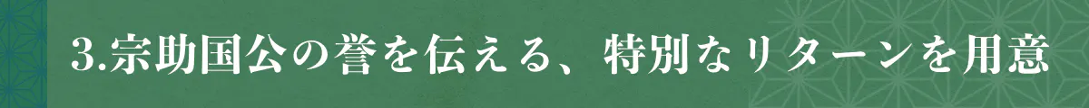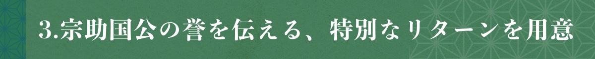 3. 宗助国公の誉を伝える、特別なリターンを用意