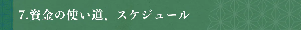 7. 資金の使い道、スケジュール
