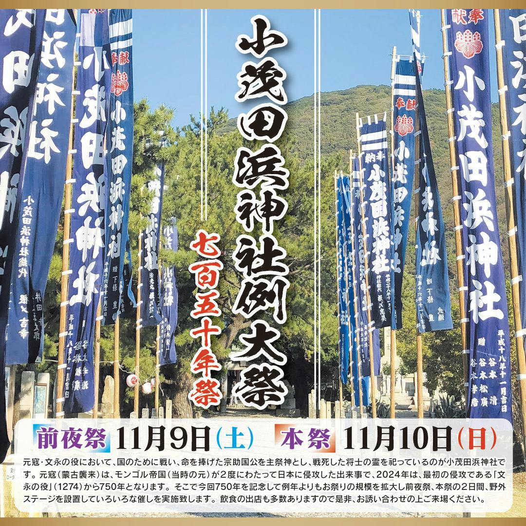 鎌倉時代、国のために命懸けで戦った武将・宗助国と家臣をしのぶ「小茂田浜神社大祭」。創建約700年の歴史ある小茂田浜神社で執り行うお祭りです。