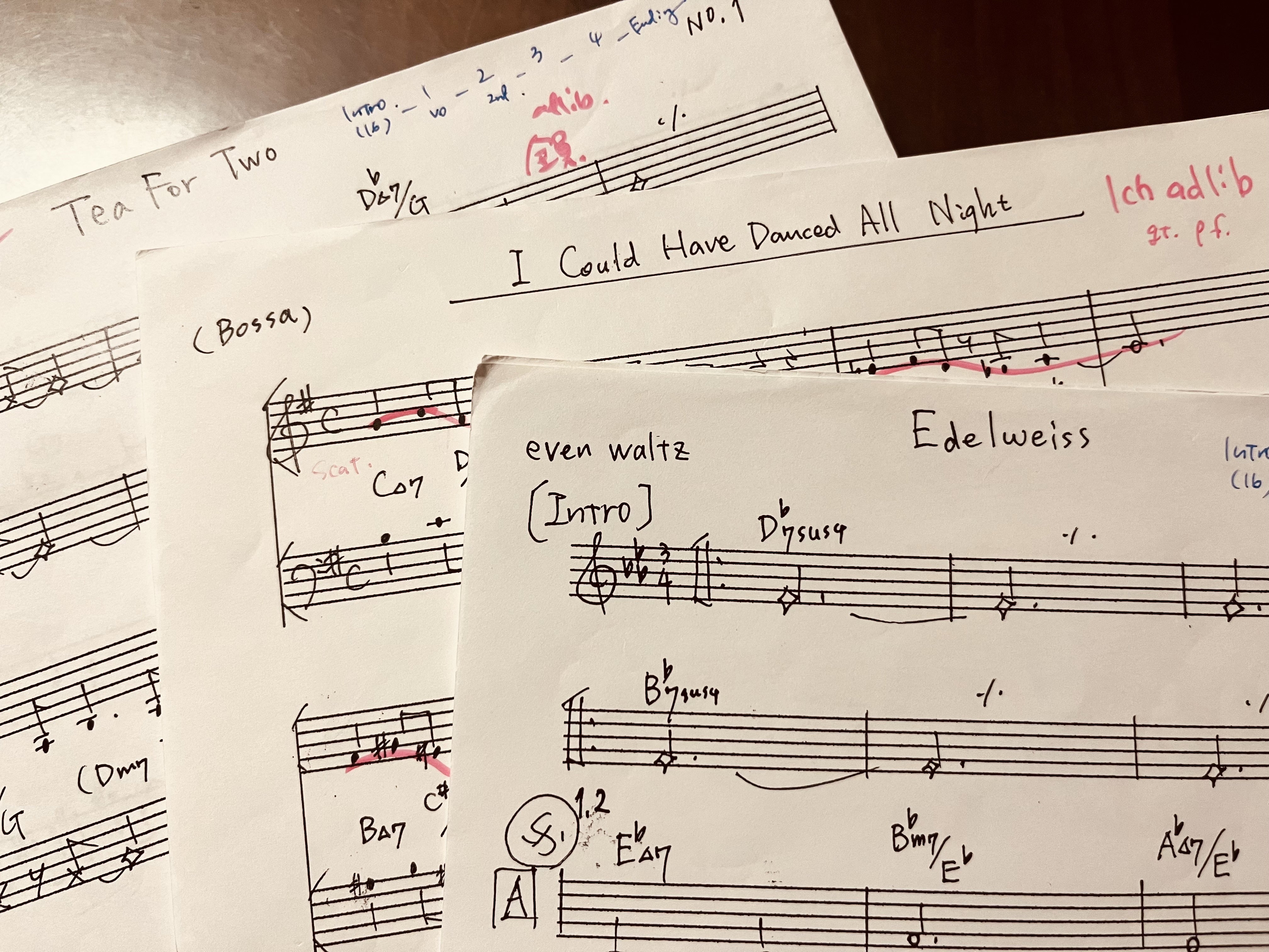 今回のレコーディングの為にゼロから準備した曲とさまざまです。
