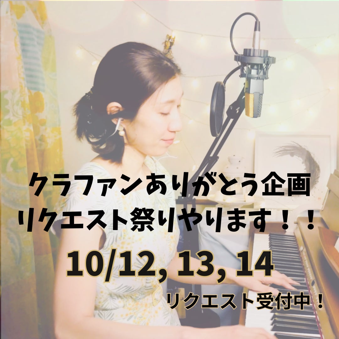 さて、本日10/11(金)と12, 13, 14日に「クラファン応援ありがとう企画 リクエスト祭り」を開催します!4夜連続のYouTube配信ライブです。