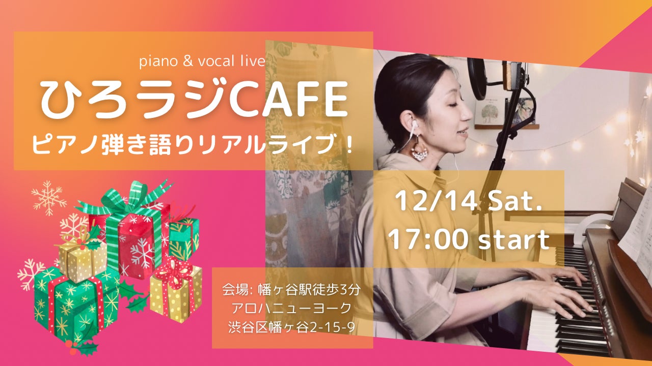 クラファンリターンの中にリアル「ひろラジカフェ」のイベントに参加できる権利というものがあります。このリターンについて詳しいことをお知らせします!ひろラジカフェとは…私がYouTube上にオープンしたバーチャルカフェ。私は音楽とMCを提供し、皆さんにはお好きな場所で楽しんでいただくカフェ。ドリンクはお好きなものをセルフサービスで。チャットによるおしゃべりと共にライブステージが進行していきます。4年前の8月に初めてオープンしたYouTube上のライブカフェ、お陰様で配信はこれまでに80回を重ねました。ひろラジcafe vol.71の様子今回のリターン企画ではいつもとは違ったリアルの形でひろラジcafeを開催します!そして勿論、ドリンクもこちらで提供します。皆さんのお好きな曲をなるべく沢山おききいただけるようききたい曲を事前にアンケートでお聞きしますので、ぜひご希望の曲をおっしゃってくださいね。それらの曲を元にセットリストを組ませていただきます。ライブコンサートは前半・後半と2回のステージを予定しています、その合間にはできる限り皆さんと直接お話ができるような時間もお取りします。リターンの中に含まれるものは・完成品のCDアルバム・クリスマスアルバム・お礼の手書きメッセージカード・Camp fireでのアルバム制作レポート・CDブックレットのSpecial Thanks欄にお名前を掲載・リアルひろラジcafeのライブチャージ・ドリンク代(2杯くらいまで)と盛りだくさんです!もしもお連れさまがいらっしゃる場合には別途¥4,000のチャージ(チャージ、ドリンク代)をお支払いいただければご参加可能です。ただし、その際のお連れさま分のCDはつきません。会場は幡ヶ谷駅(京王線)から徒歩3分のカフェ「アロハニューヨーク」渋谷区幡ヶ谷2-15-9https://www.instagram.com/aloha.newyork?igsh=MWpqZTY2a3o3eTJlcw==とてもアットホームな雰囲気のスペースですのでどうぞゆったりとお寛ぎください。リアルひろラジcafeの枠はまだございます!まだ迷い中の方、ぜひこちらのリターンもご検討ください。皆さんとリアルでお会いできることをとっても楽しみにしています。