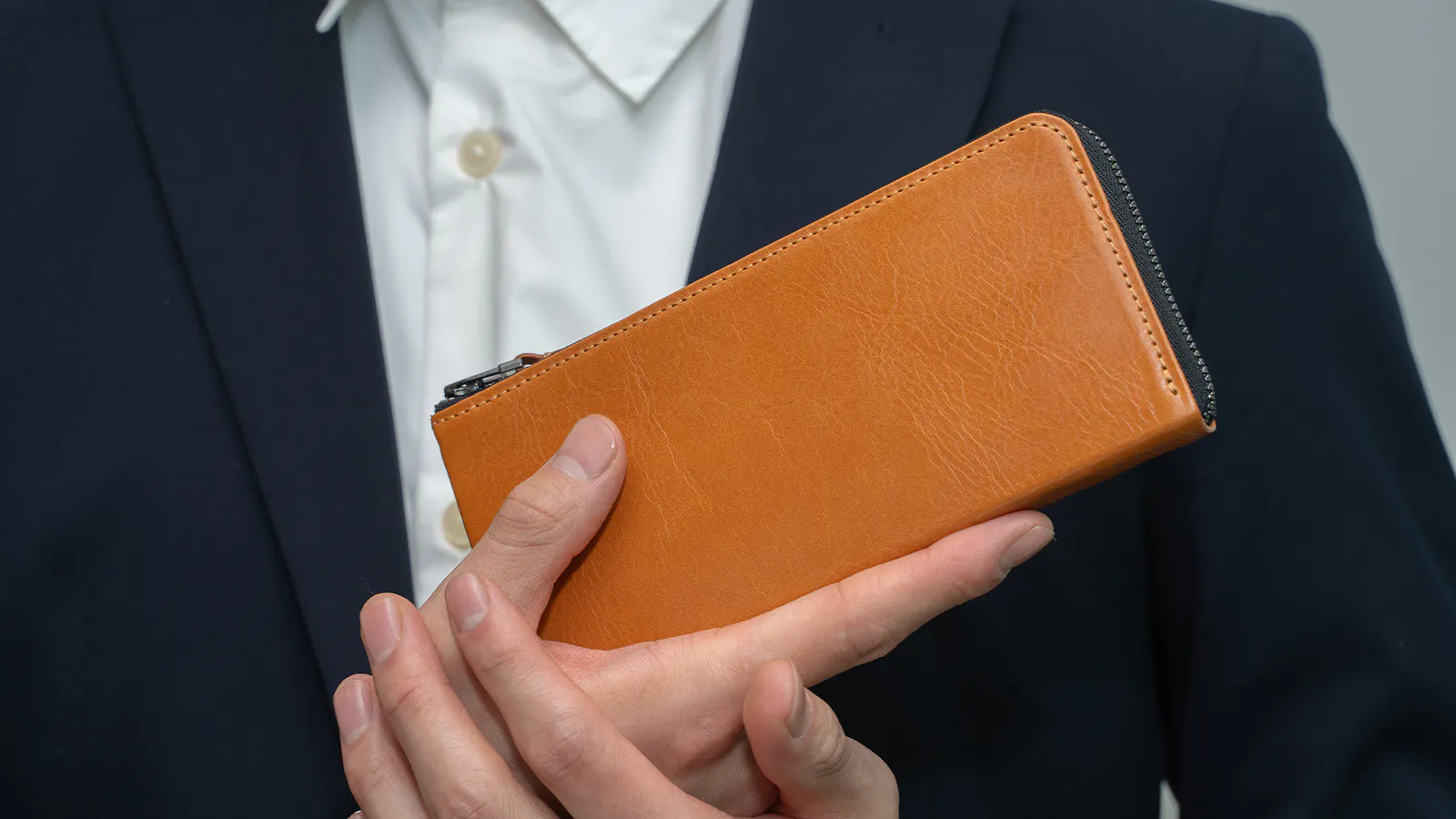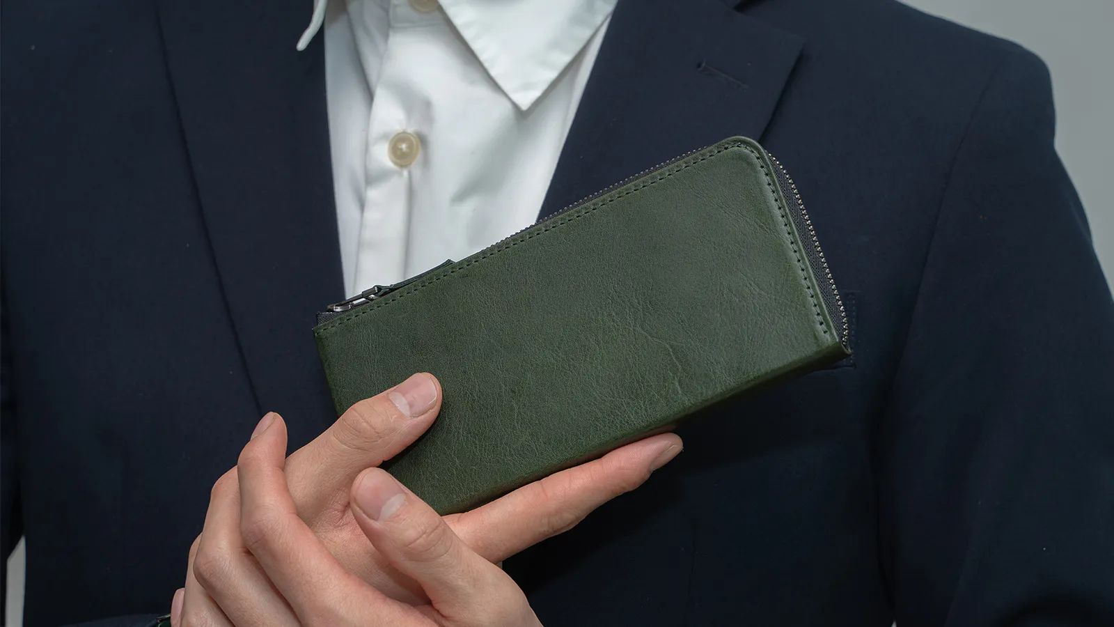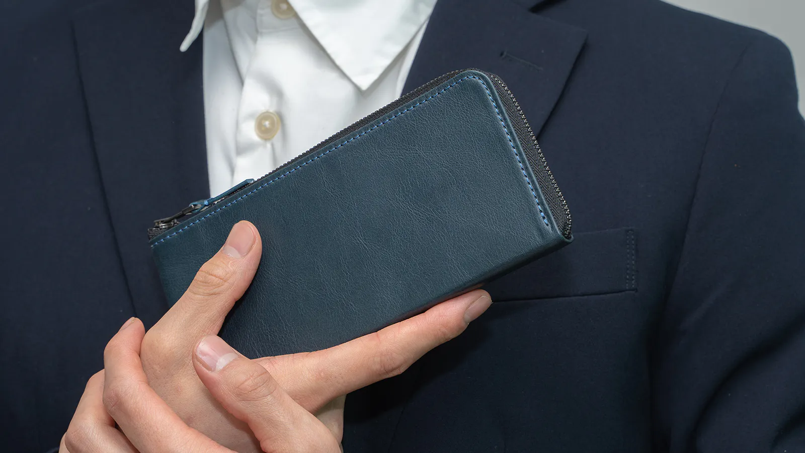 スーツスタイルの時に財布のせいでボディラインが崩れてしまうのが嫌で長財布を諦めていませんか?