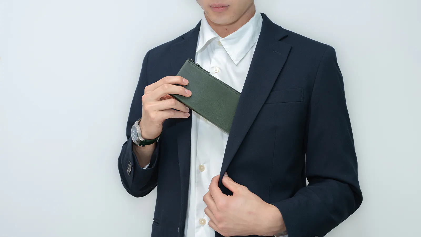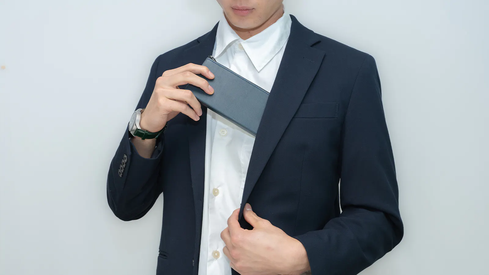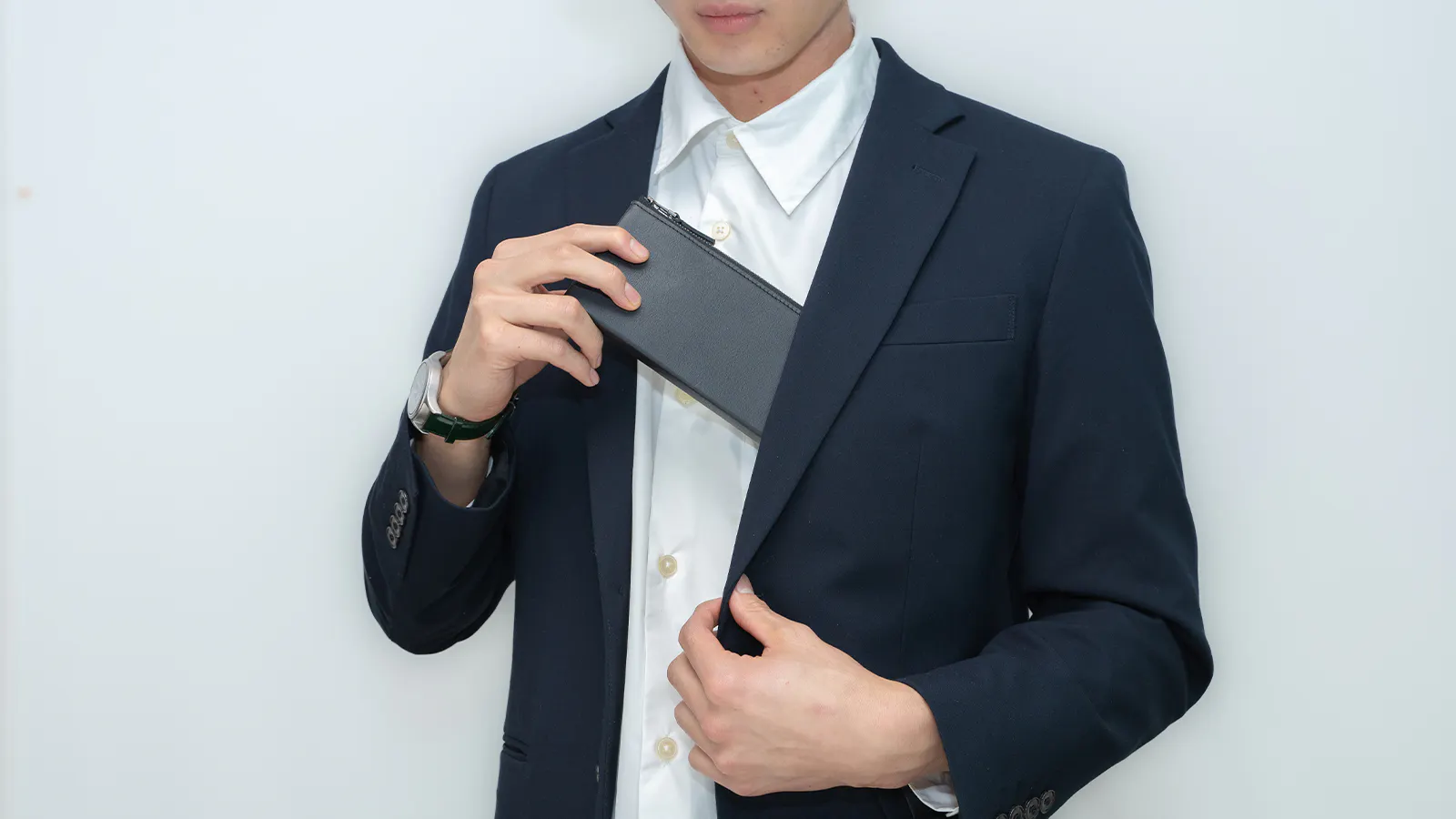 スーツスタイルの時に財布のせいでボディラインが崩れてしまうのが嫌で長財布を諦めていませんか?