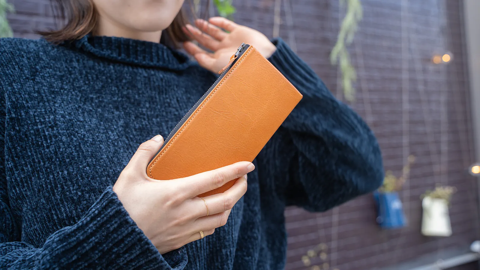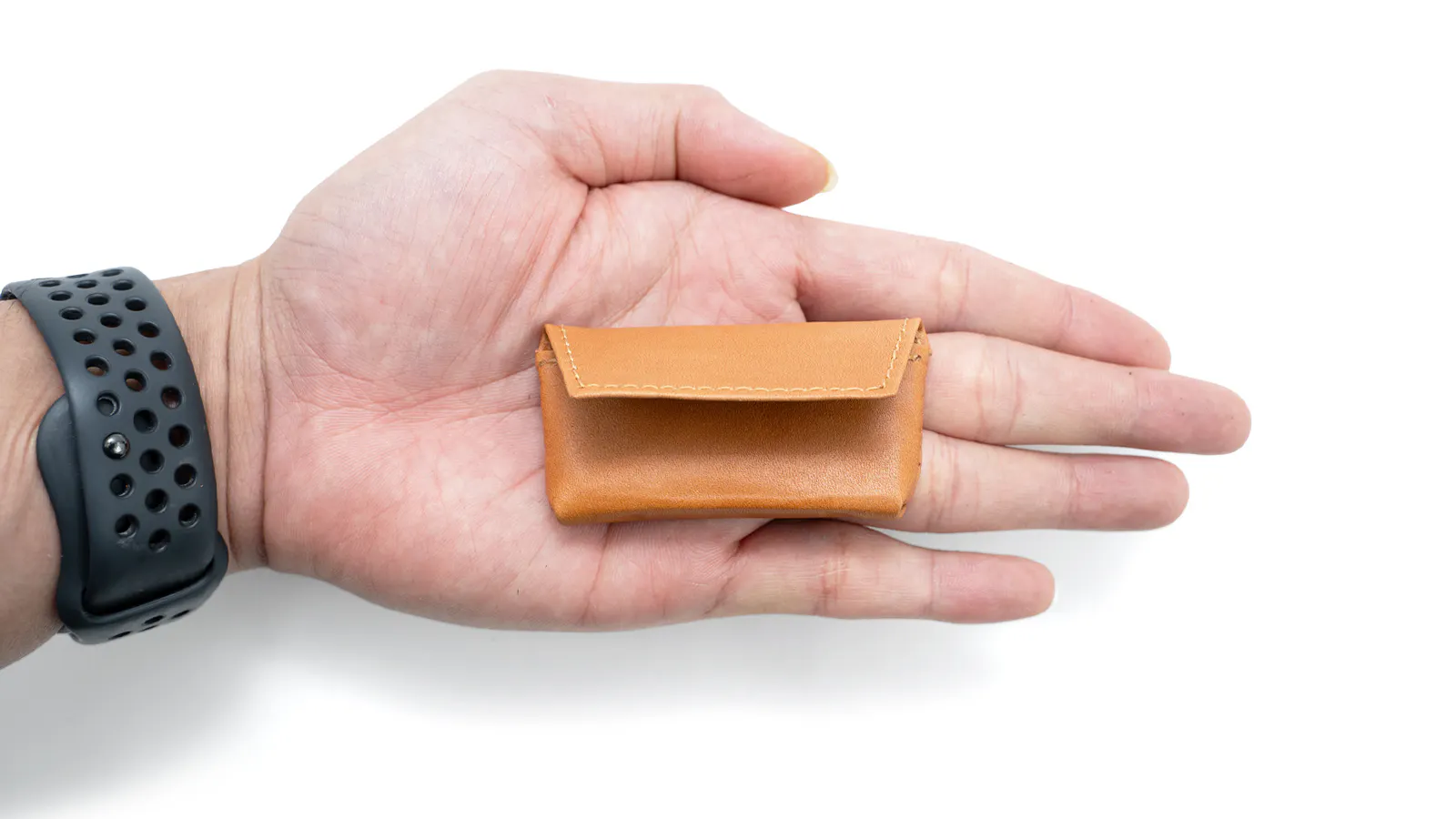 手の平で隠れるほどのサイズですが、口が大きく広がるので小物の出し入れに窮屈な印象を与えません。