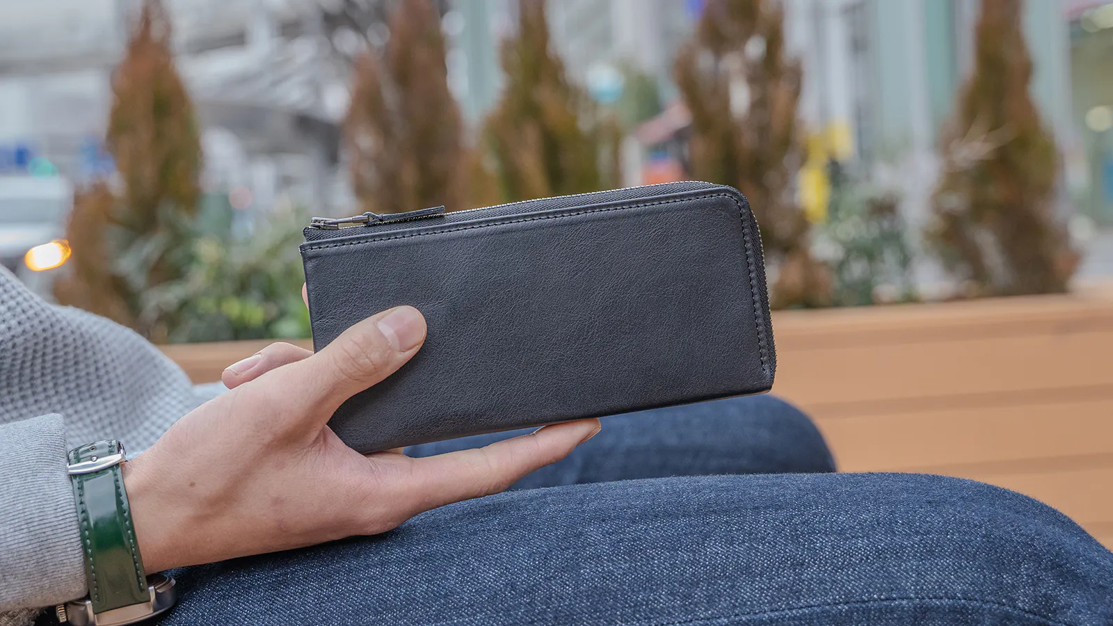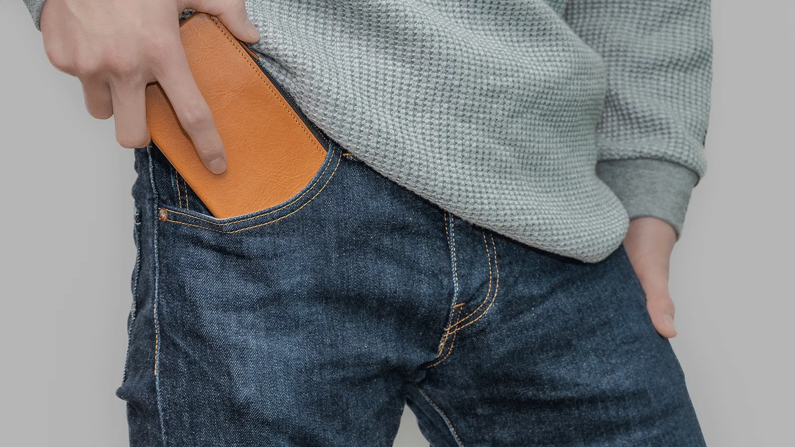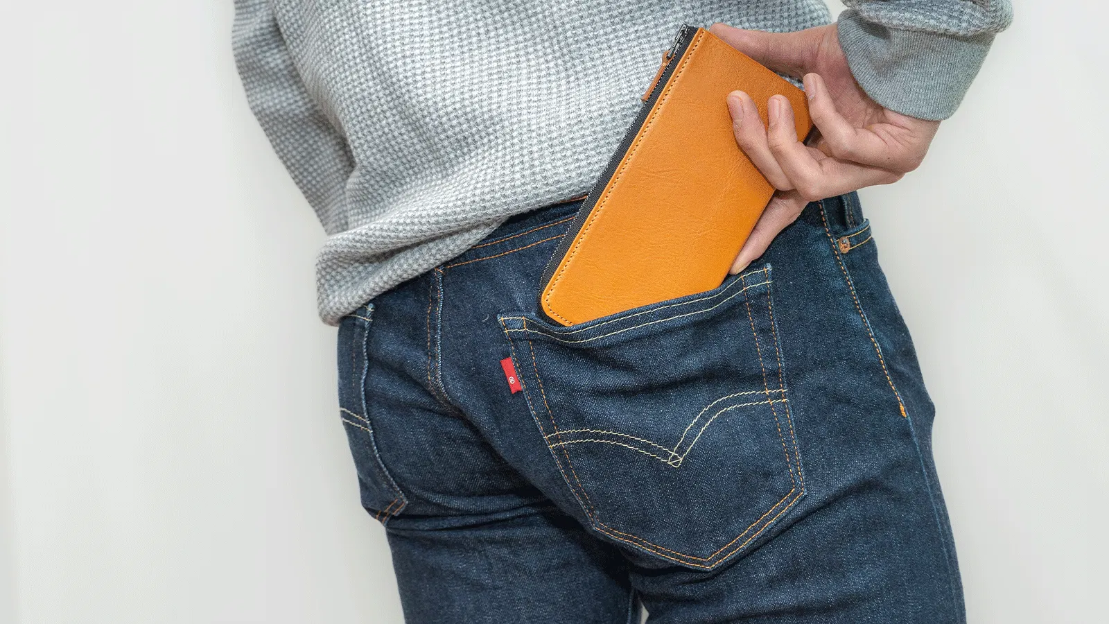 スキニーなジーンズのポケットに入れても、財布が変に強調せず自然なヒップラインを保ちます。