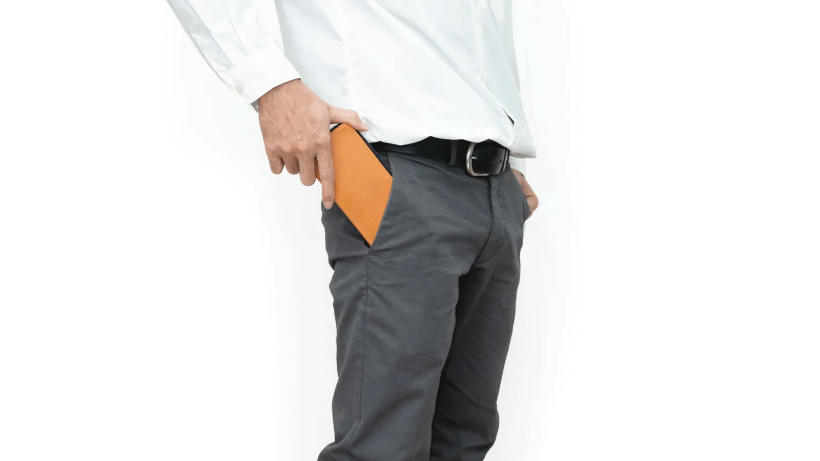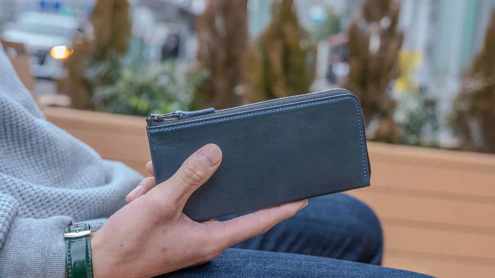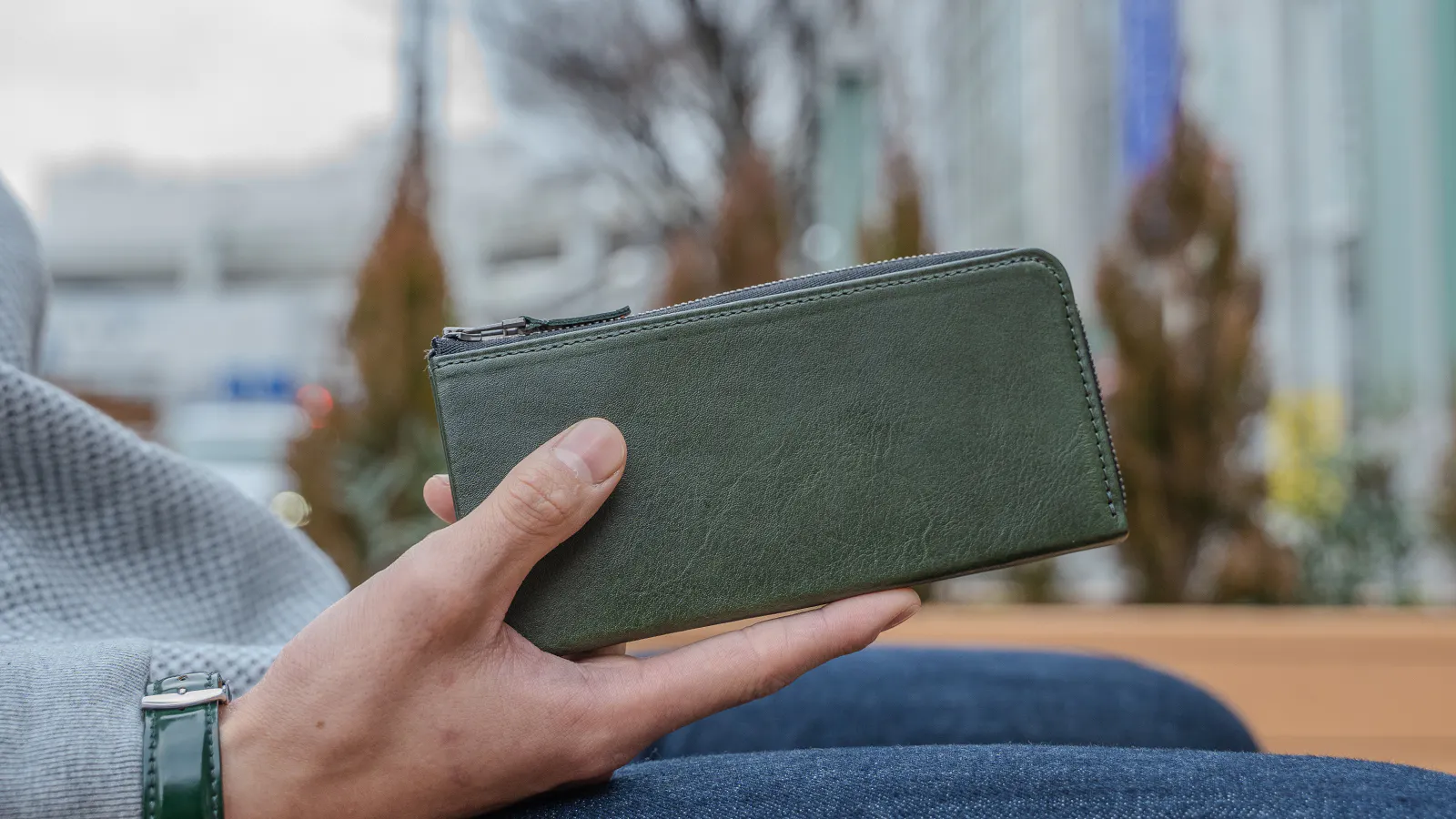 スキニーなジーンズのポケットに入れても、財布が変に強調せず自然なヒップラインを保ちます。