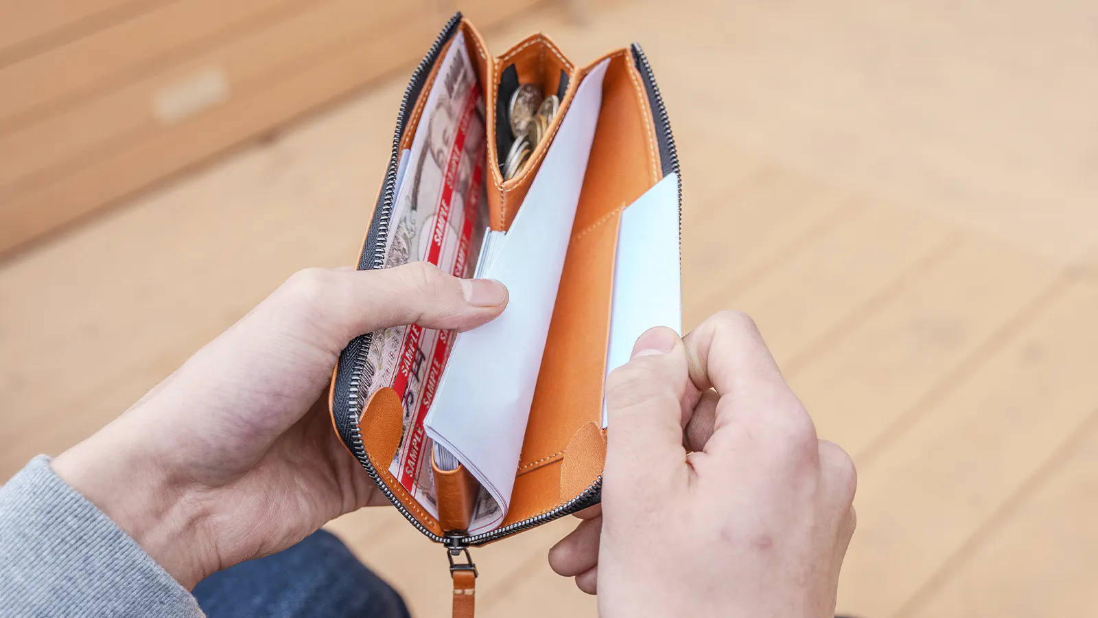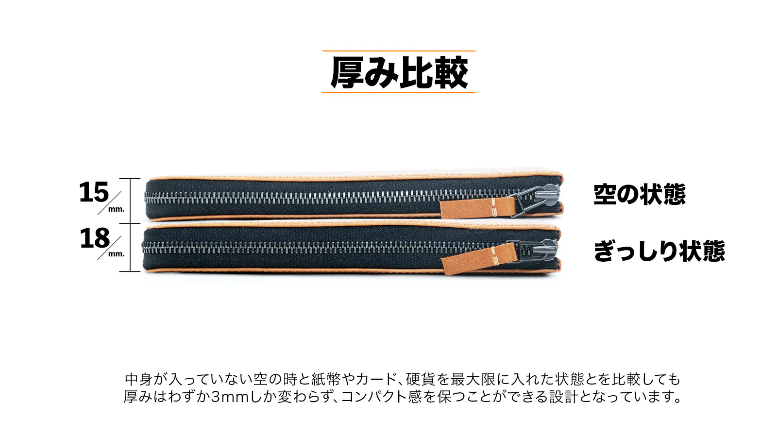 むやみにサイズを小さくするだけではスペースの収まりが悪くなり、場合によってはお札の角に嫌な折れ目がついたりジップに挟まってしまうこともありますよね。