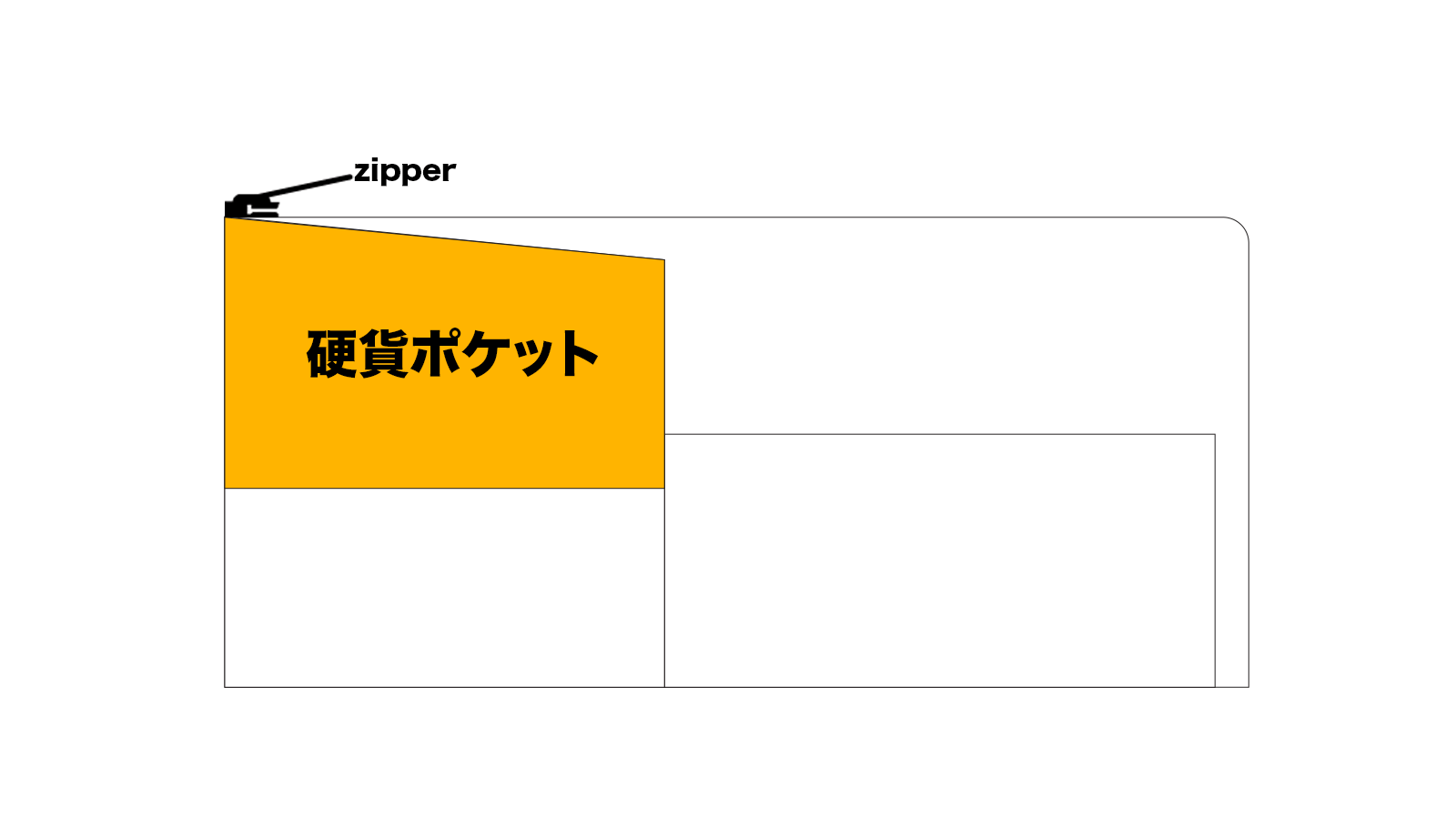 ポケットの上部は数ミリ斜めになっているので、開閉時にジップが引っ掛かってしまうことはありません。