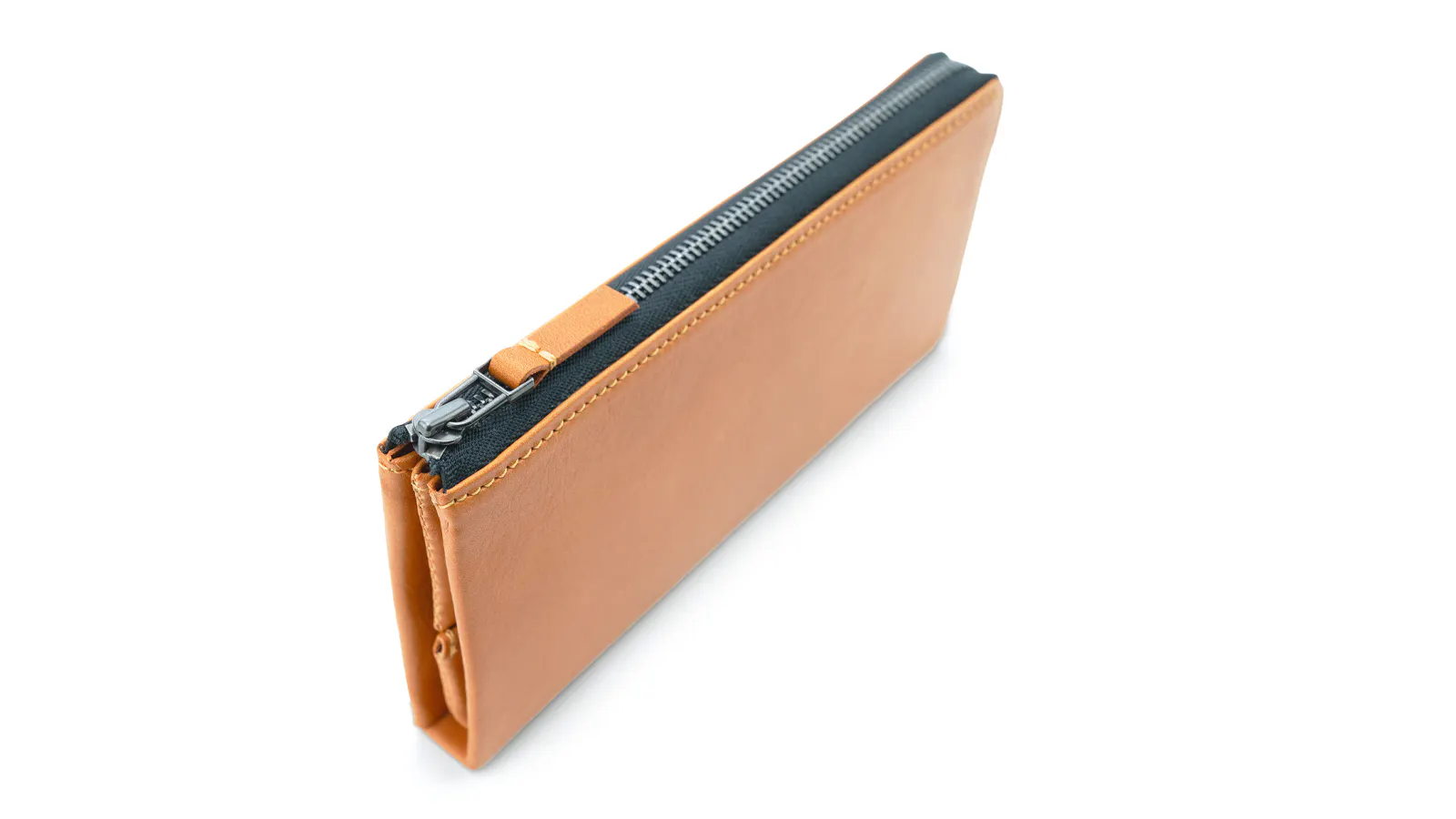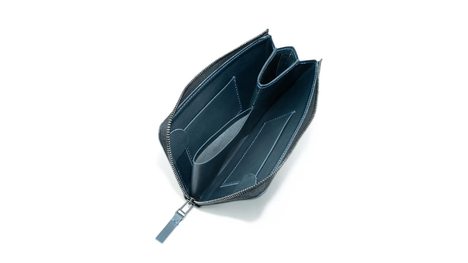 「ロングウォレット1(上の画像)」では財布を囲うように両側に縫い目があるのに対し、「ロングウォレットS(下の画像)」はジップに沿ってL字型に縫製をしています。