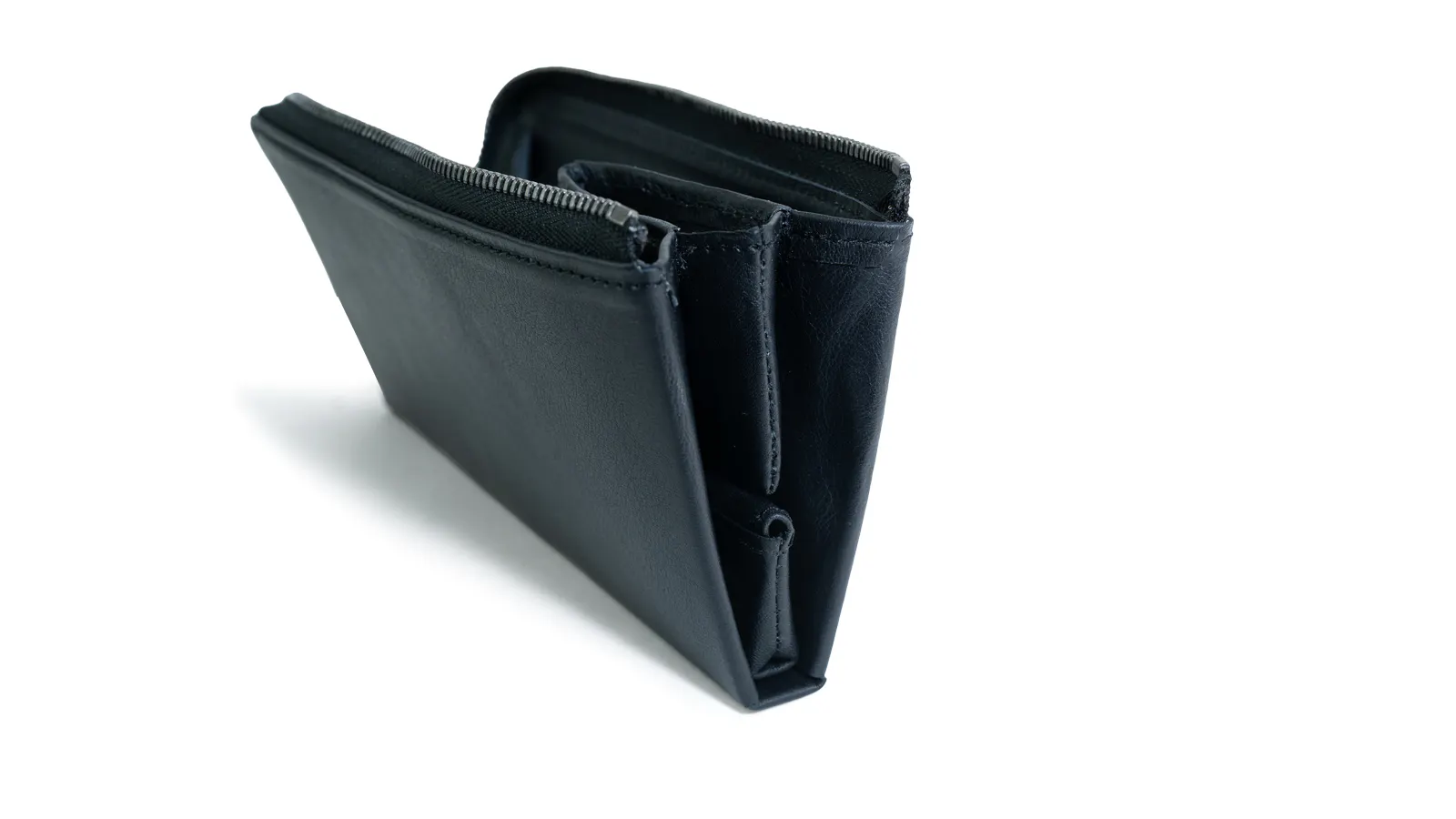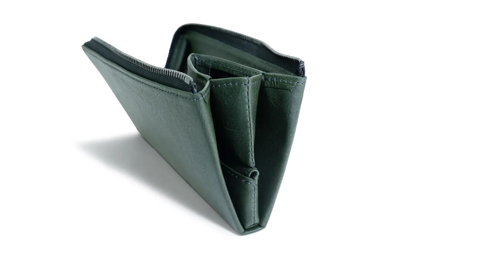 片側の側面には縫い目がないためデッドスペースがなくなり、お札をしっかり奥まで入れることができるようになりました。