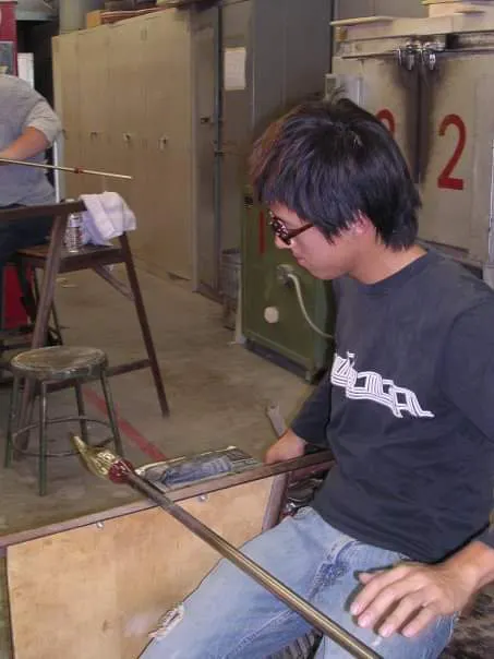 ↑サンタモニカのカレッジ。吹きガラスを専攻していた自分。バディはアメリカ生まれの日本人の陶芸の先生。 先生すらもクラスで学ぶ自由さ。