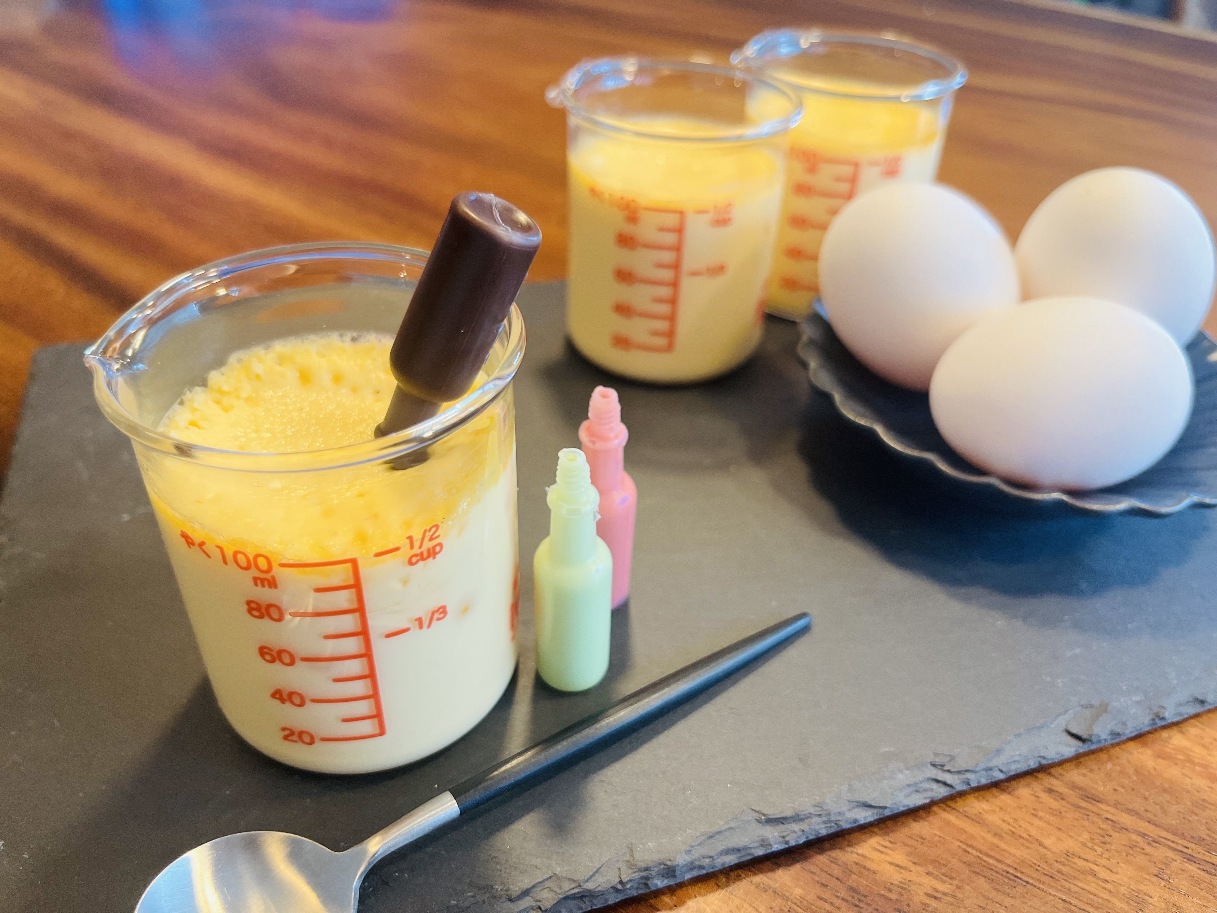 とアイデアが生まれてビーカープリンが誕生しました。