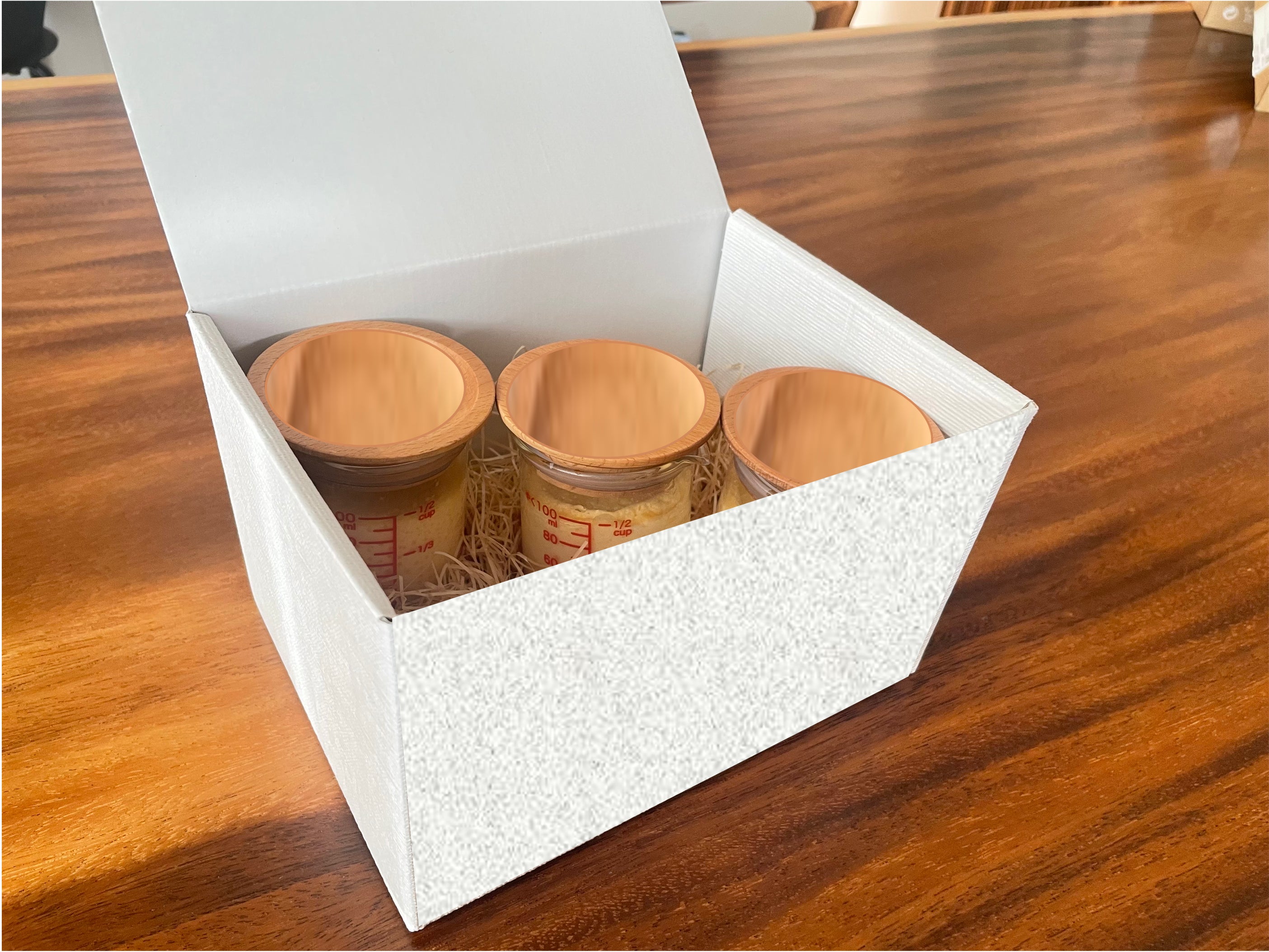 しかし、カラメルのないプリンを作って食べても味に変化がなく飽きてしまいました。そこで、プリンに色々な味のソースを入れて味変できるようにしようと思いました。