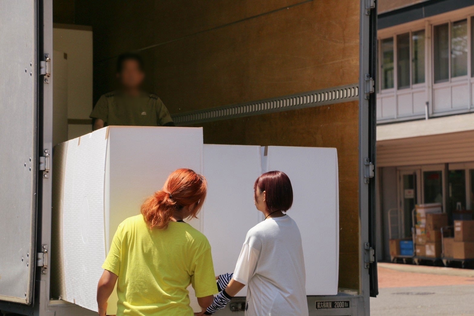 enの夏休み最初の活動日に、巨大オブジェの主役“発泡スチロール”を搬入しました!