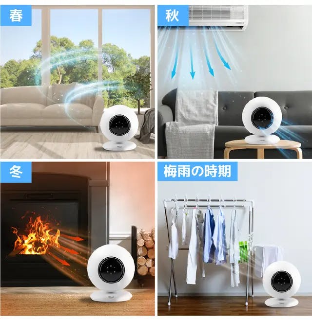春と秋には、屋内外の空気を循環させより新鮮な雰囲気を醸し出します。 梅雨時にも洗濯物の乾燥効率を高め、湿度を効果的に調節することができます。 夏の蒸し暑い時は、TELLO ZETは涼しい風を送ります。 また、寒い冬には暖かい空気を効率的に循環させて居心地の良い環境を提供します。