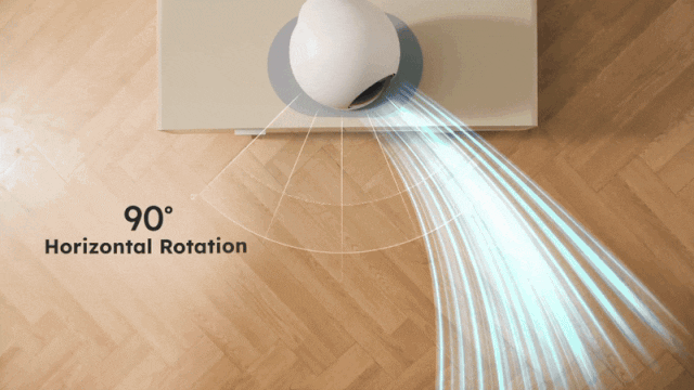 上下90°に左右90°の自動首振り機能を搭載。従来品は左右80°のみで特定範囲に絞った送風であったが、本製品では上下、左右90°自動首振りの自動首振りを追加しました。 左右自動首振りは90°、上下は90°首振りと併用ができ立体的に効率よく部屋の空気を撹拌します。