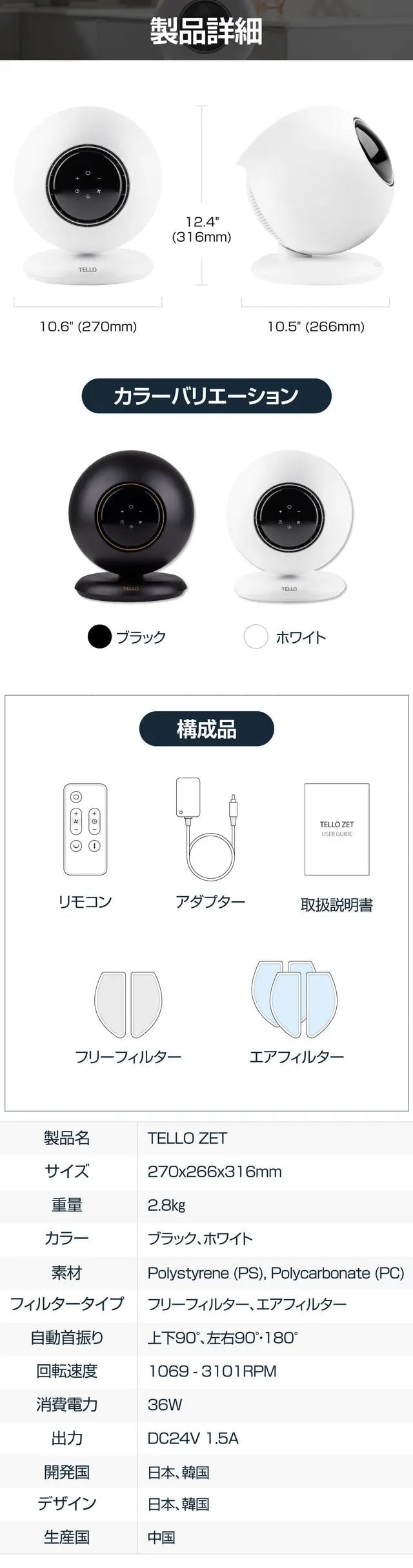TELLO ZETは従来の扇風機とは異なり、TELLO ZETは外部に羽根が見えない安全なデザインを採用しています。お子様がいる家庭やペットがいる環境でも安心してお使いいただけます。もちろん、羽根が見えないモダンなデザインも、もう一つのポイントです。