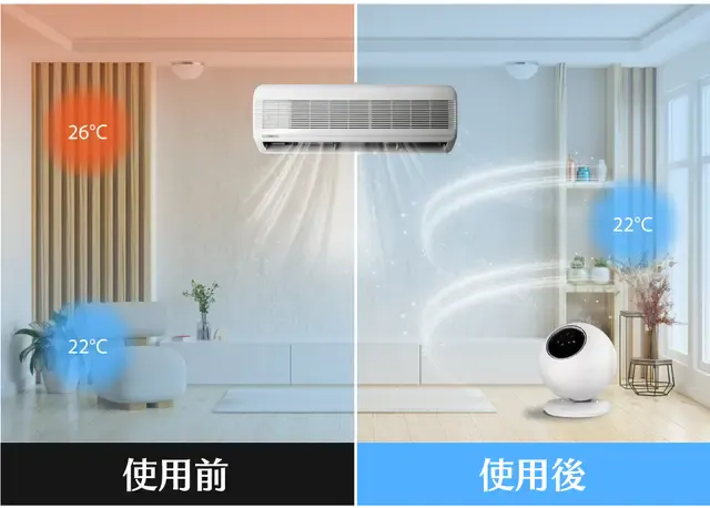 A:いいえ。TELLO ZETは冷風や温風が排出されません。TELLO ZETはヒーターやエアコンを利用する際に冷風や温風をサポートしながら空気を循環する役割をします。