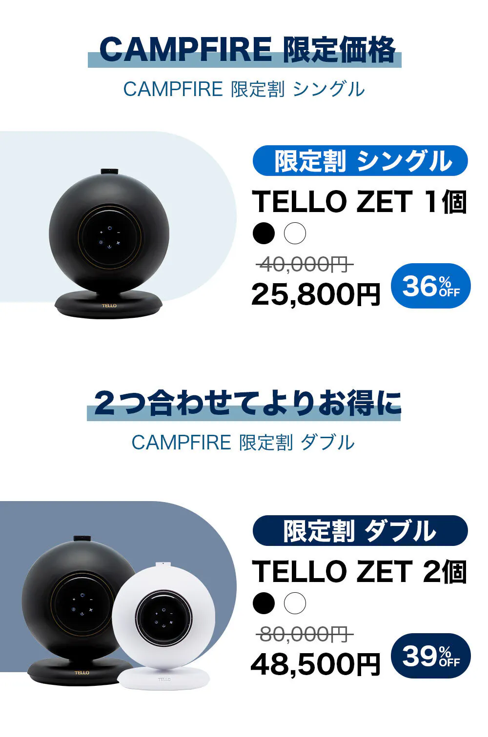TELLO ZETは、万が一電源を切り忘れても安心できるように、最大8時間連続で動作した後に自動的に停止する設定になっています。もちろん、タイマー機能も搭載しており、より短い時間に設定することも可能です。
