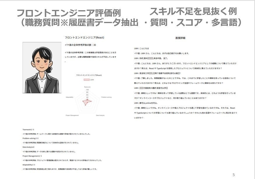 (¥1,500/回、60回/年のAI面接実施、評価レポート提示します。)