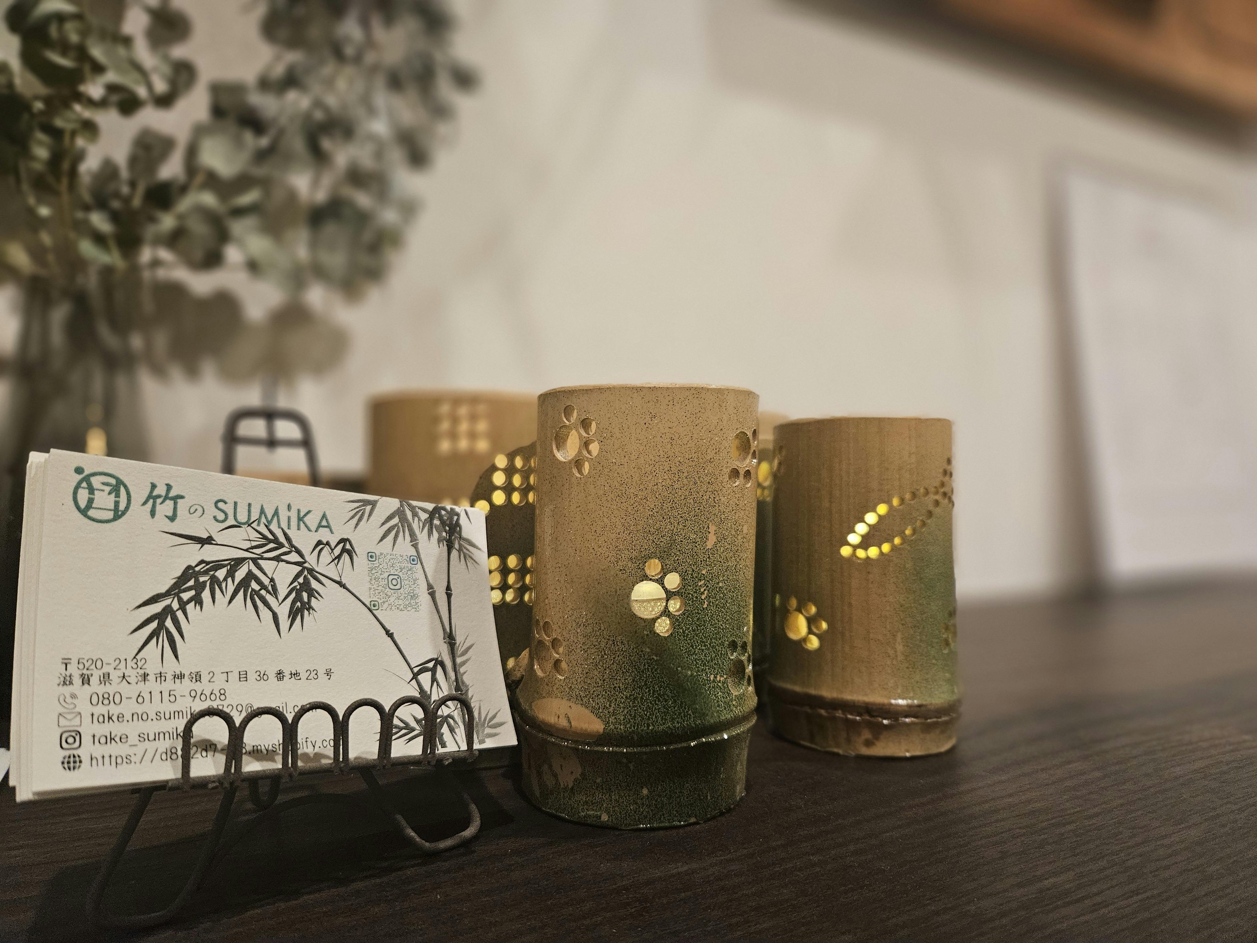 ここにミニ竹灯りを置かせていただけることとなり展示させていただいてます◎