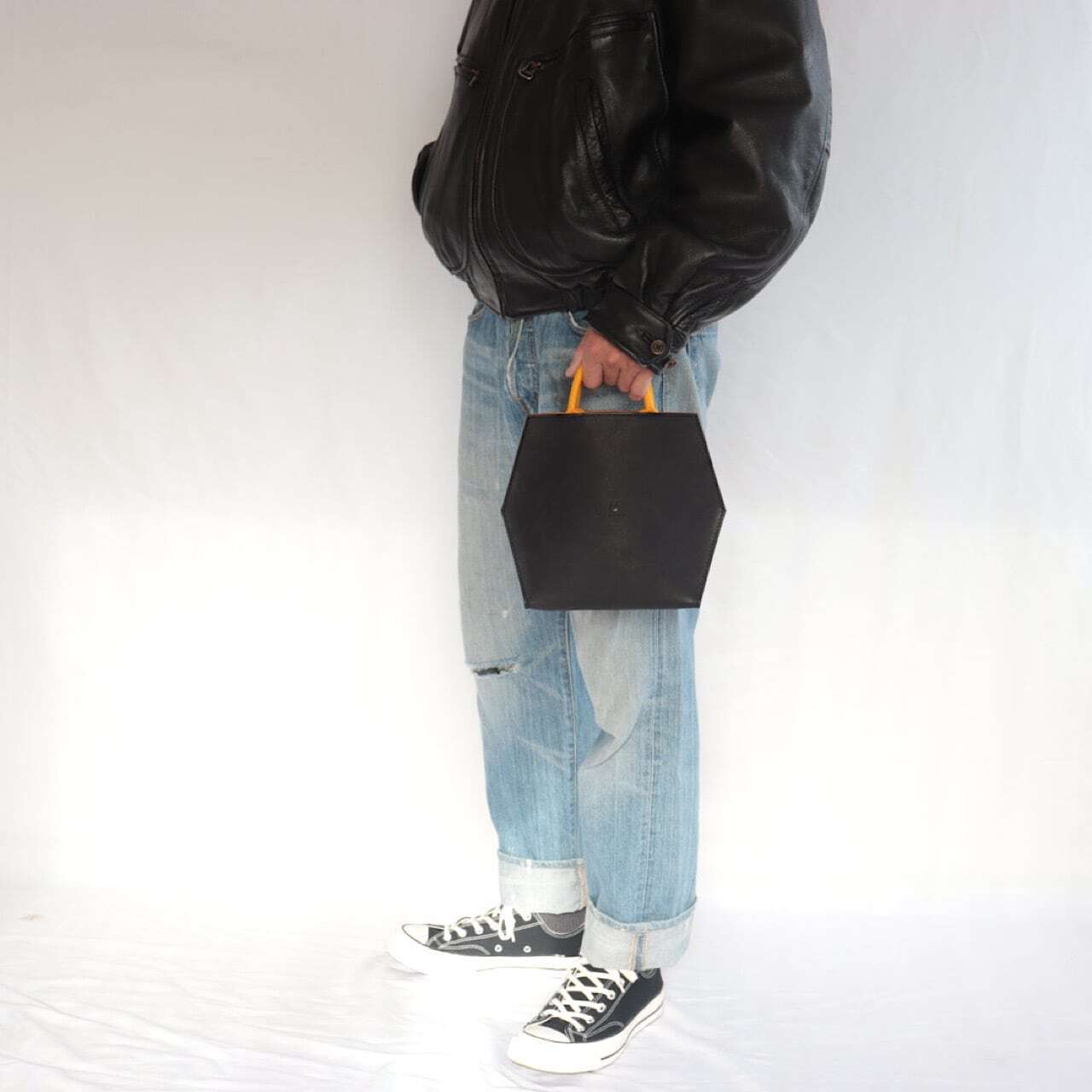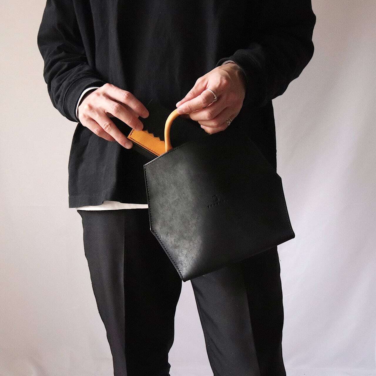 鏡の前でスタイリングをする際、「ワクワク」するモノづくりをコンセプトに自然素材を感じながら革らしさとマイノリティーある製品をお楽しみいただけると幸いです。