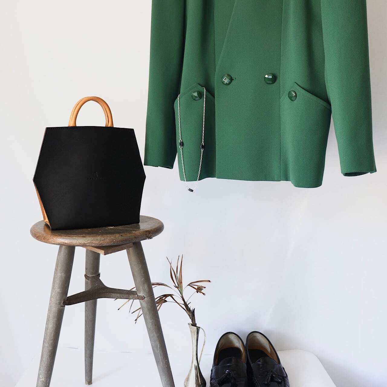 落ち着きのあるバッグなのでシルバーなどのアクセサリーと合わせると