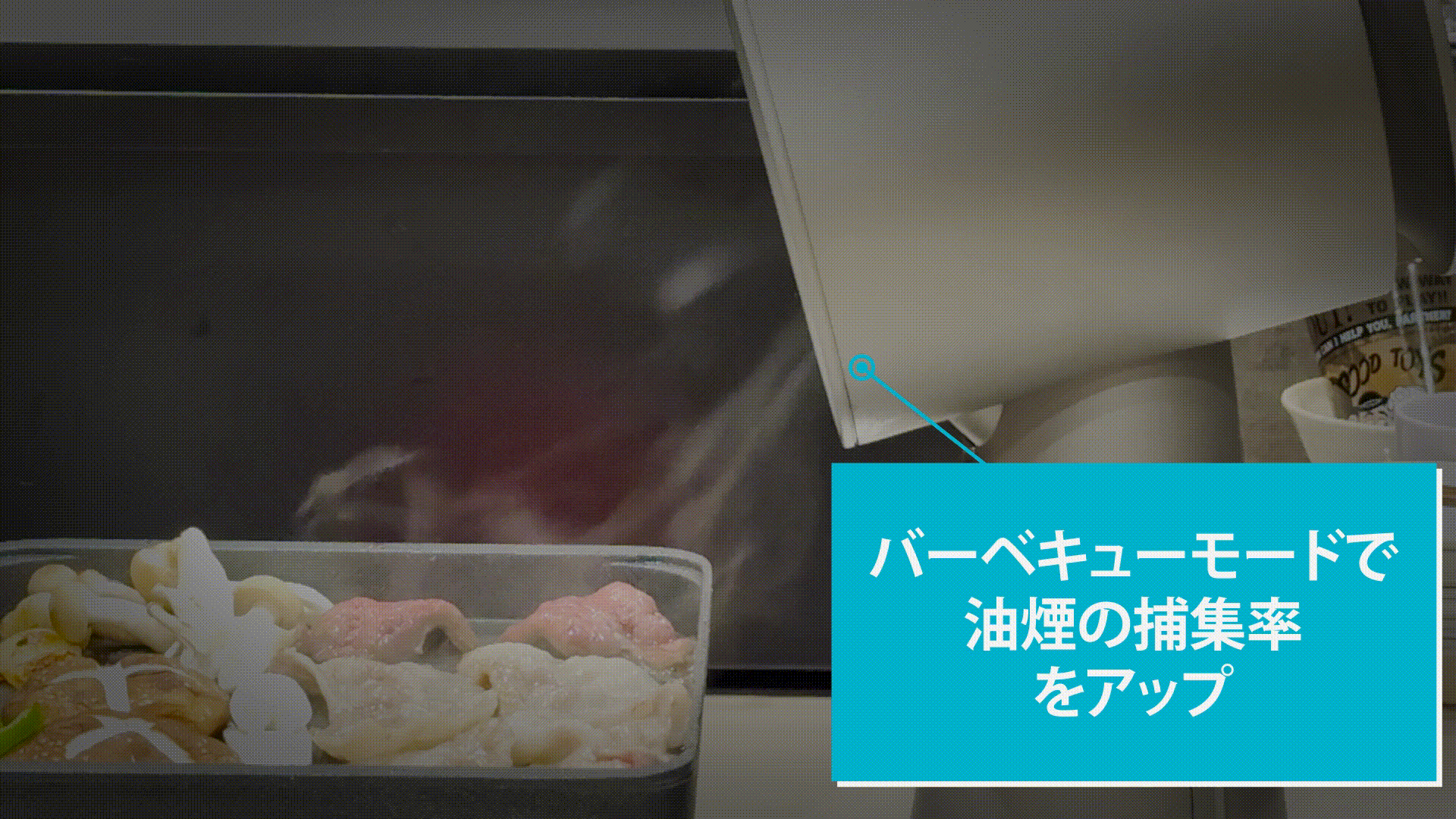 静音モード、標準モード、バーベキューモードの3種類の風量調節が備わっているため、調理状況に応じて、簡単に快適な空間が実現します。