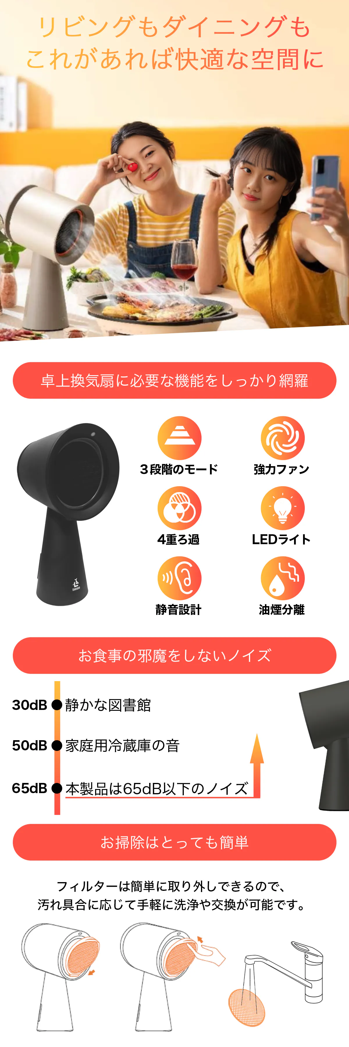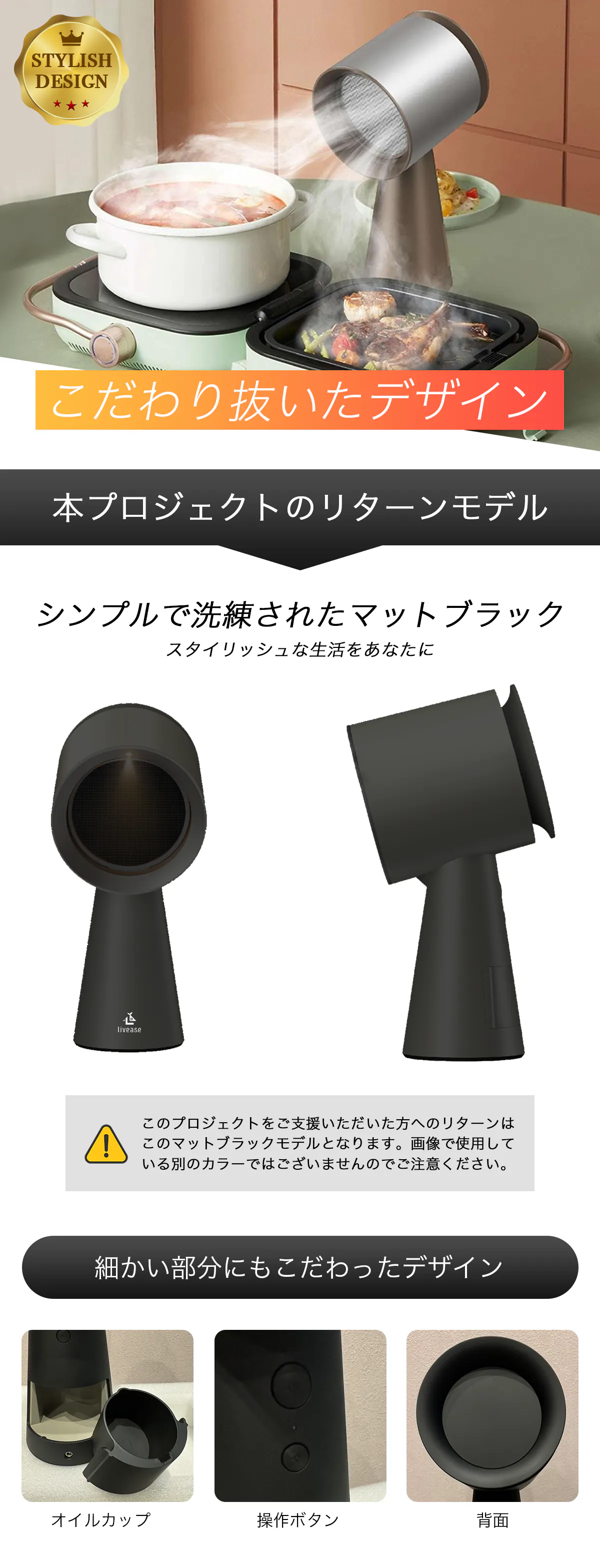 マットブラックは時代を超えて愛される色、そのシックでモダンな魅力はどんな空間にもマッチします。現代の家電デザインにおいて、マットブラックはそのシンプルさと洗練さで注目を集めています。新しい卓上換気扇も、このトレンドを取り入れ、エレガントなマットブラックを採用しました。高機能でありながら、ミニマルで美しいデザインは、あなたの生活空間を一層引き立てます。どんなインテリアにも溶け込みながら、スタイリッシュな存在感を放つこの換気扇は、最新のライフスタイルにぴったりの一品です。