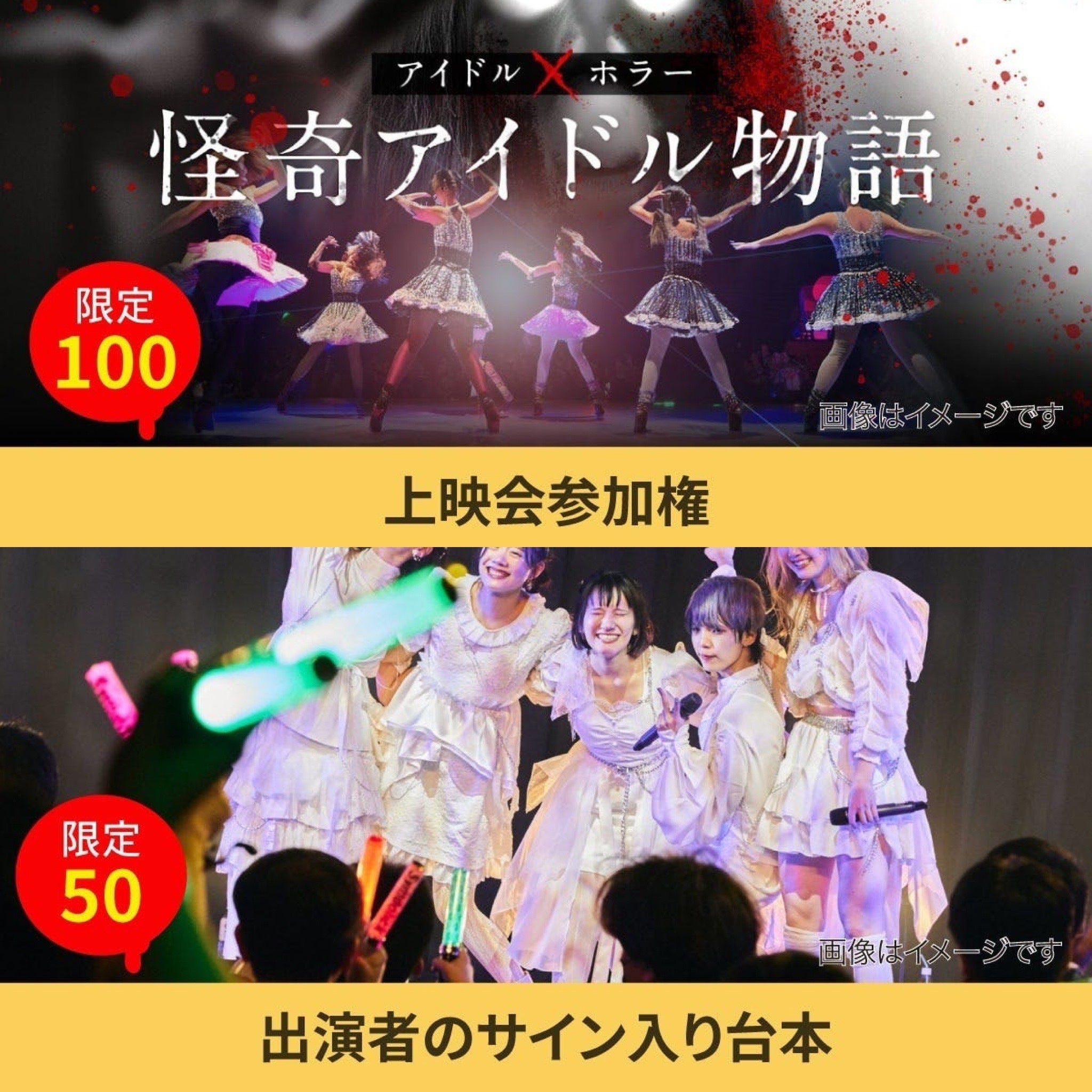 アイドル怪奇物語の上映会参加券はもちろん、出演アイドルの舞台挨拶や、サイン入りグッズ、出演者アイドルとの交流会などもございます。