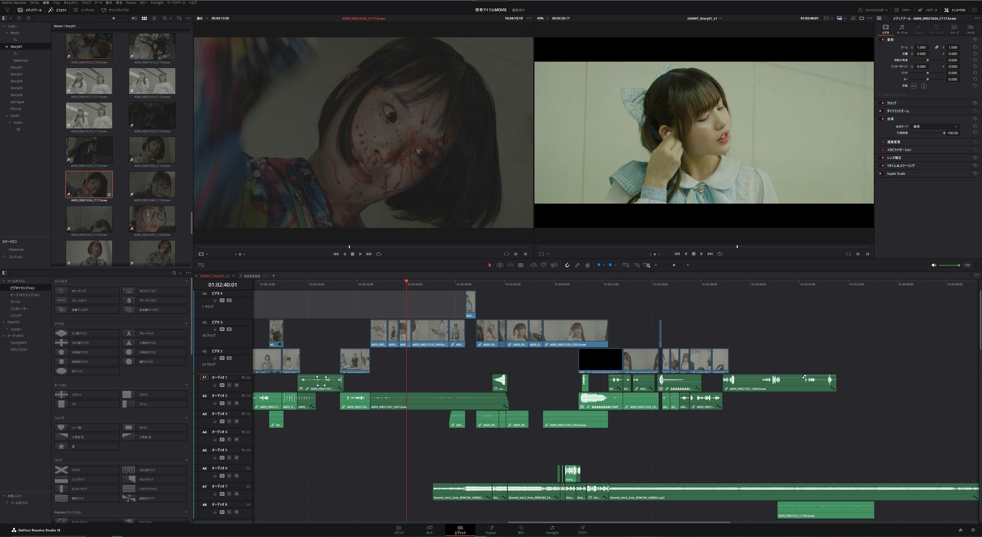ホラー映画の編集は、まず撮影したワンシーンワンシーンをストーリーにそって全体を粗く繋げます。