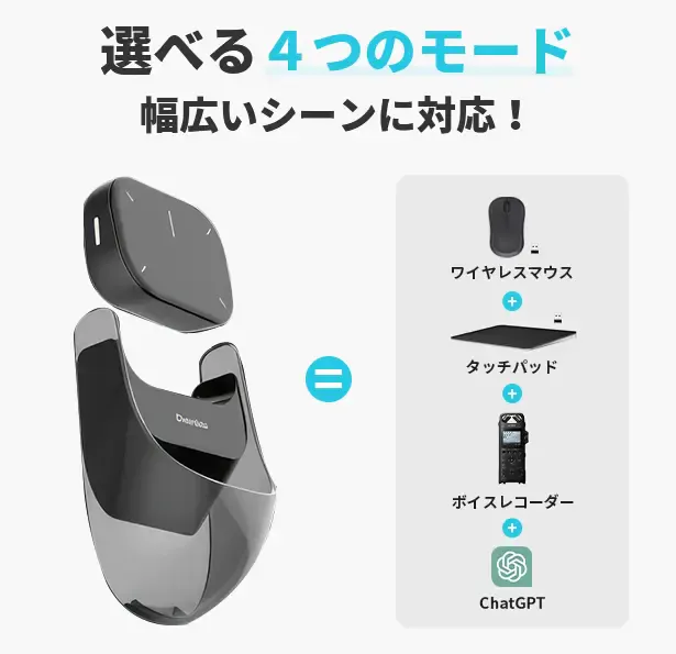この超小型スマートマウスは、マウスやタッチパッド、ボイスレコーダー、そしてAIアシスタントの機能を1つに融合させた、革新的なデバイスです。