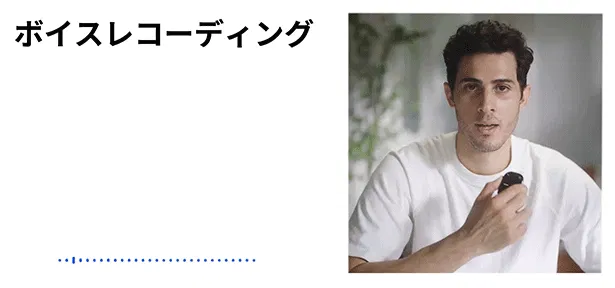 AI機能(ChatGPTコア)が搭載されており、録音した音声を数秒でテキストに変換し、重要なポイントを自動的に抽出して要約として整理します。