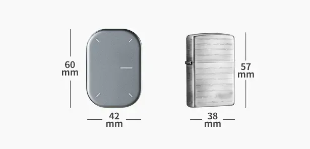 Cheerdots 2の本体はライターほどのサイズで,重さはたったの36グラム—クロワッサン一個と同じ重さです。