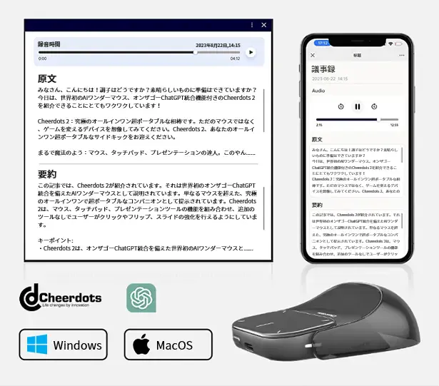 最新のAI技術を活用し、仕事や勉強、メモを取る際には、Cheerdots 2があれば効率が格段に向上し、どんな状況にもスムーズに対応できます。