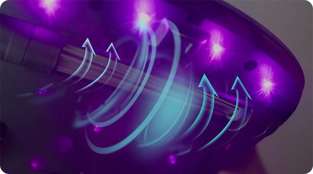 強力吸引と高速たたき出しだけではありません。底部にある4つのLED UV-Cライトで隅々まで除菌。ダニが繁殖しにくい環境作りをサポートします。