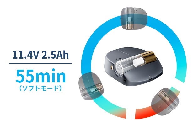 - 3、3つの運転モードでソファーやカーペットもおまかせ!最大1時間連続稼働で徹底的にお掃除!