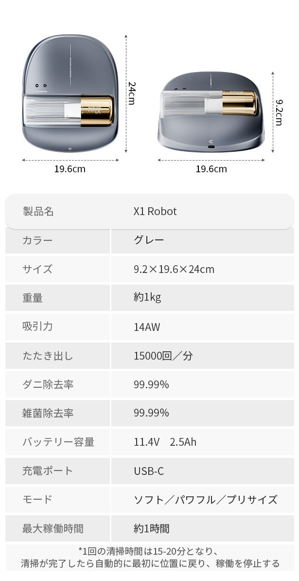 X1 Robotは使用前に設定を行ったり、使用中に見張ったりする必要は一切ありません。電源ボタンを押すだけで掃除を自動で開始します。両手を使わず、力もいらず、監視も不要。従来のダニ掃除機の手間と時間を解消し、あなたの手を本当に解放します。