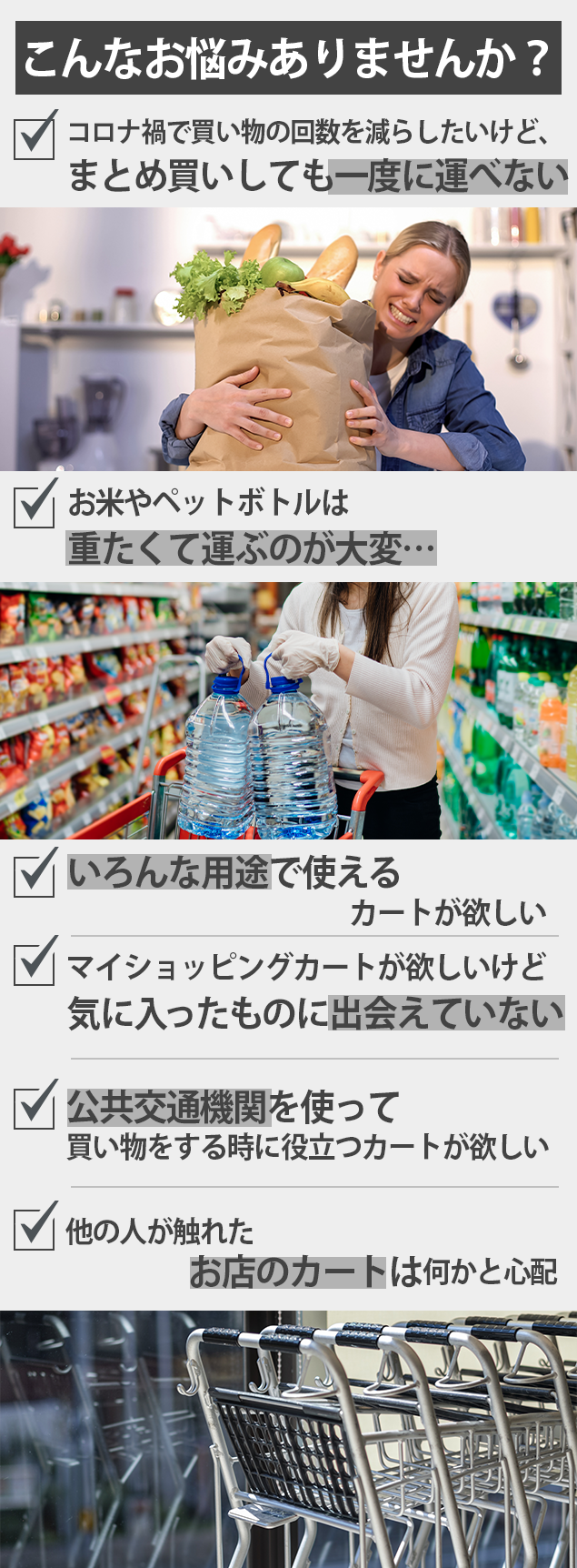 スーパーのカートをそのまま持って帰れれば良いのに。