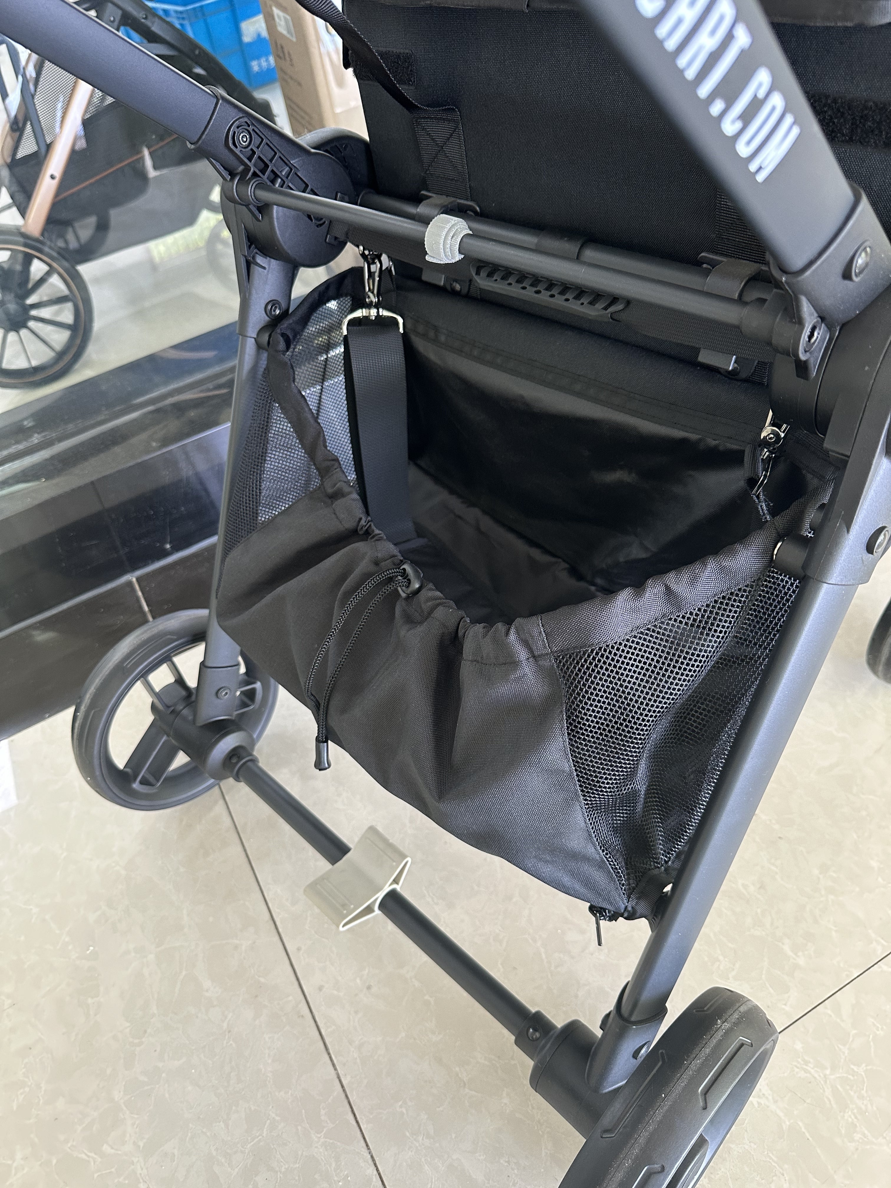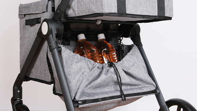 カート下にはメッシュハンモック付きは3kg荷物をのせることが可能!