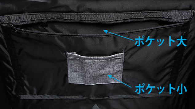 それぞれのバスケットに大小2個のポケット付き