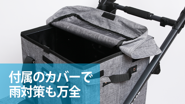 付属のカバーでバスケット上部からの雨の侵入を防ぐこともできます。
