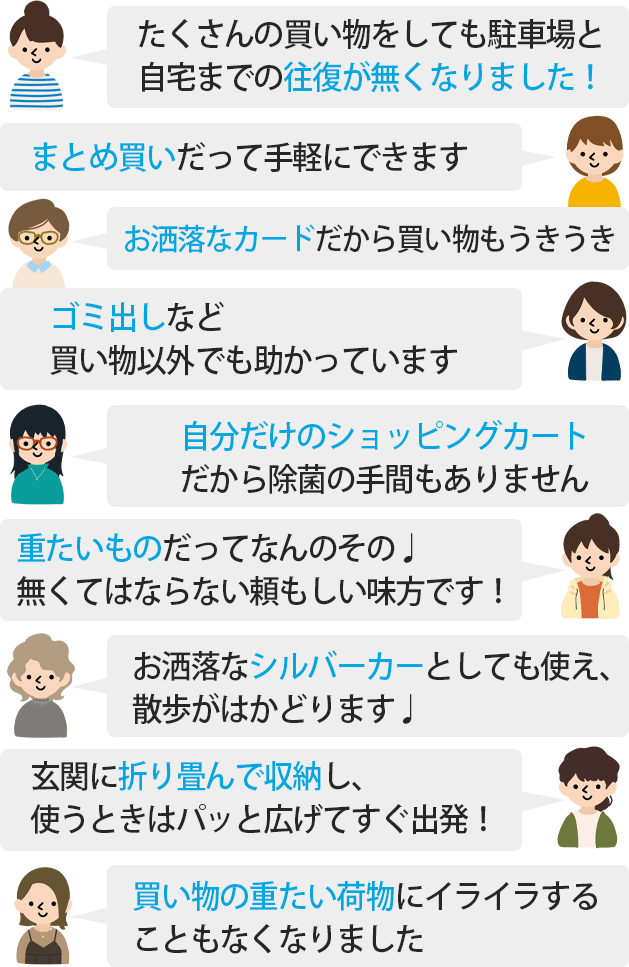 たくさんの買い物をしても軽やかな表情で運べ、VOOMcartを使うと様々な「happy」が待っています!!