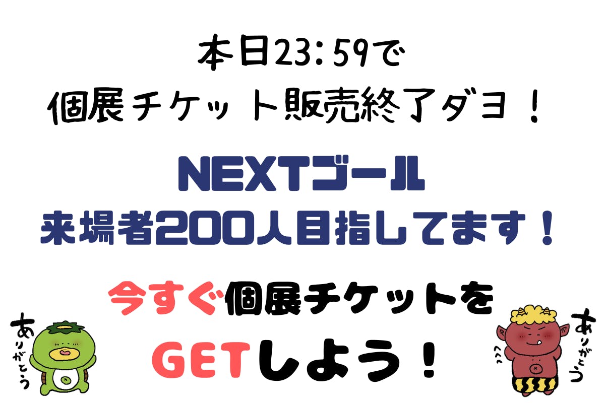 追記:本日いよいよ最終日!200人に個展会場に来てほしい!